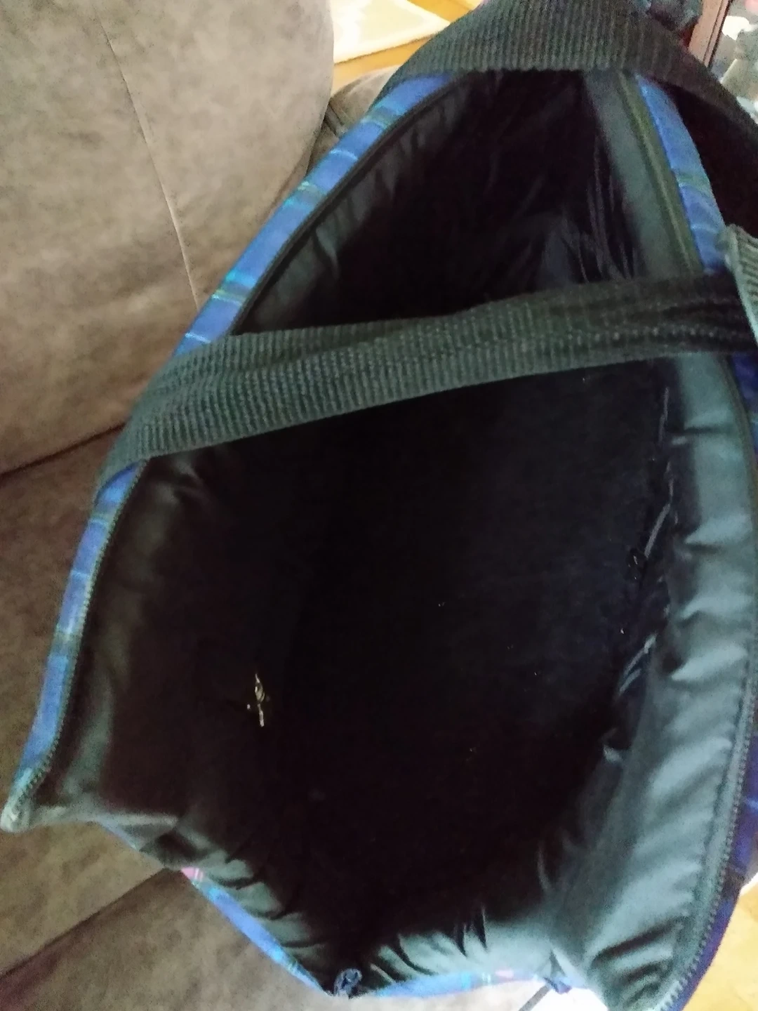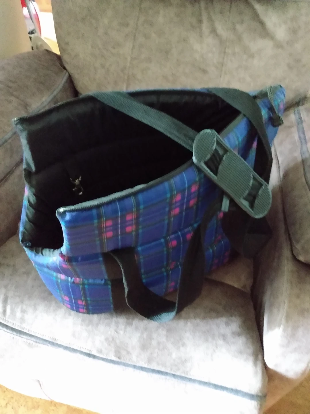New small dog carry purse. Your dog can lay down inside while safely being harnessed and rest it's head to look out.