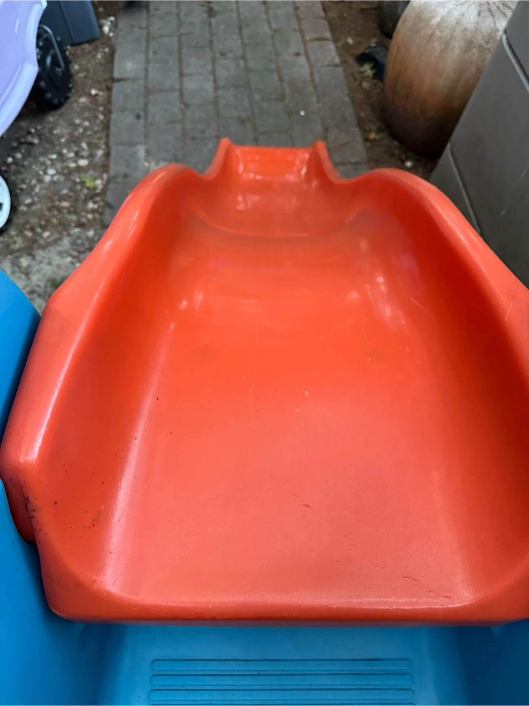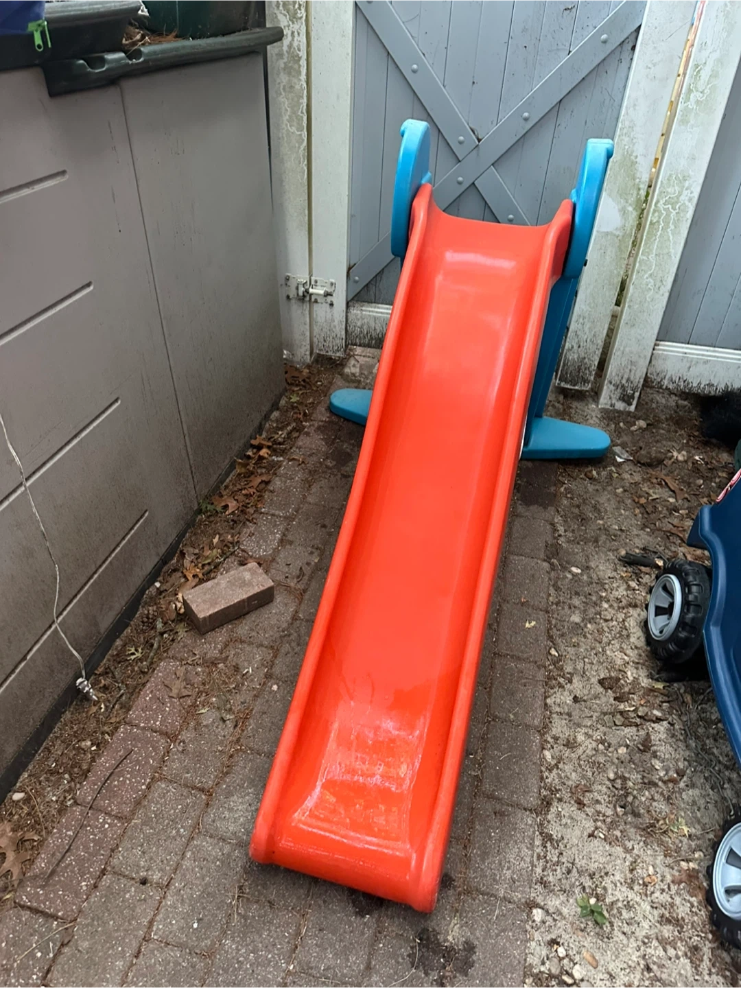 Selling a gently used kids' slide in bright orange and blue. It's perfect for outdoor fun and easy to set up in your backyard. Hours of entertainment for your little ones!