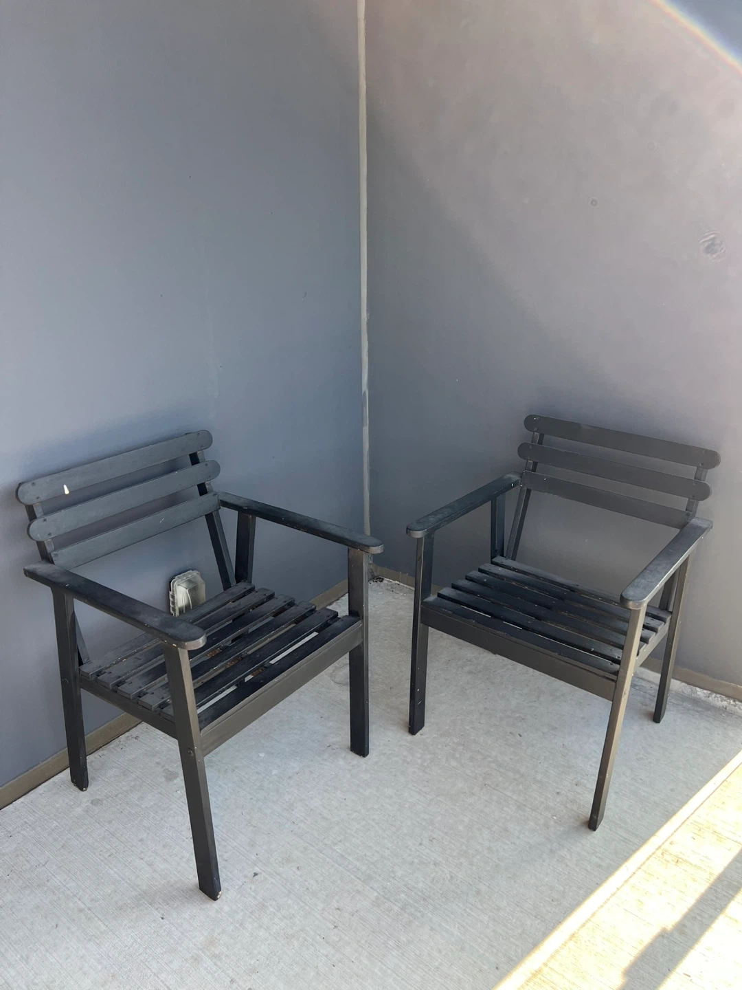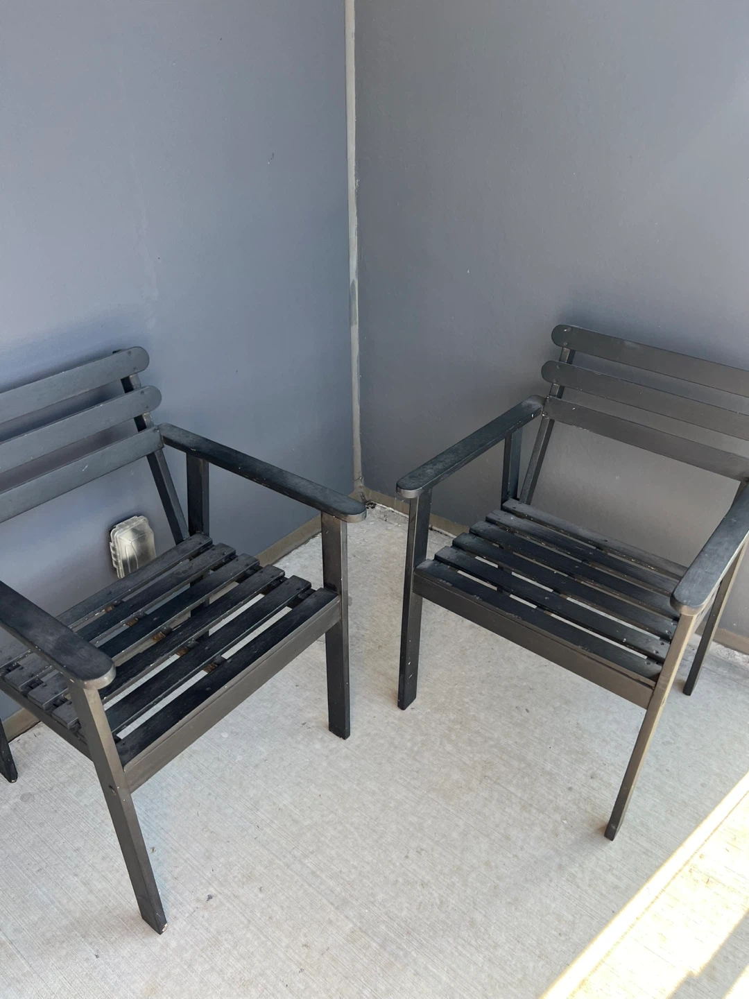 Selling a set of two outdoor patio chairs! They're study and in great shape which makes them perfect for relaxing on your balcony or patio.
