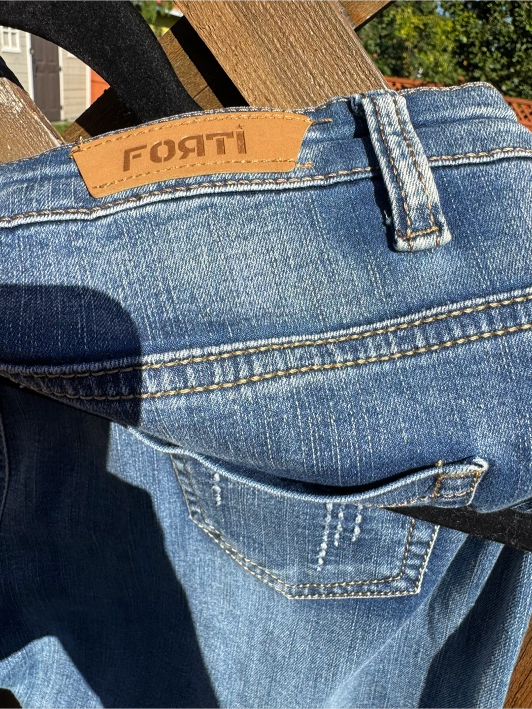 21Selling a pair of Forti denim jeans in size 32. They're in great condition and ready for a new home! The jeans have a stylish, slightly distressed look with some frayed detailing. Perfect for casual wear!