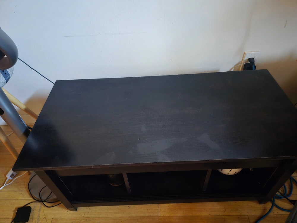 Selling a black TV stand coffee table. It has a shelf underneath for storage. The top lifts up and can be used as a tv table. It's in very good condition and ready for a new home