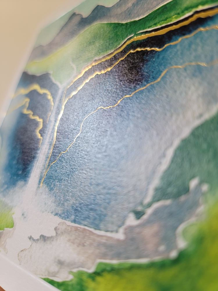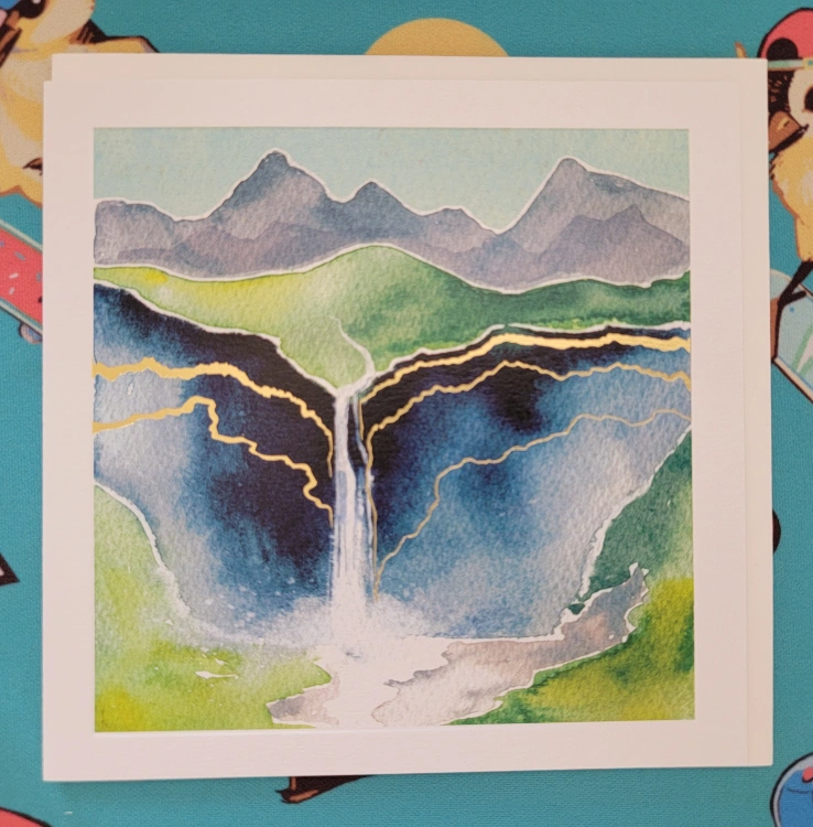 Selling a lovely card from The Art File! It's part of their 'Natural Phenomenon' collection. The card features a beautiful watercolour landscape with gold accents. Perfect for sending a thoughtful message to someone special. Comes with an envelope so it's ready to go.
