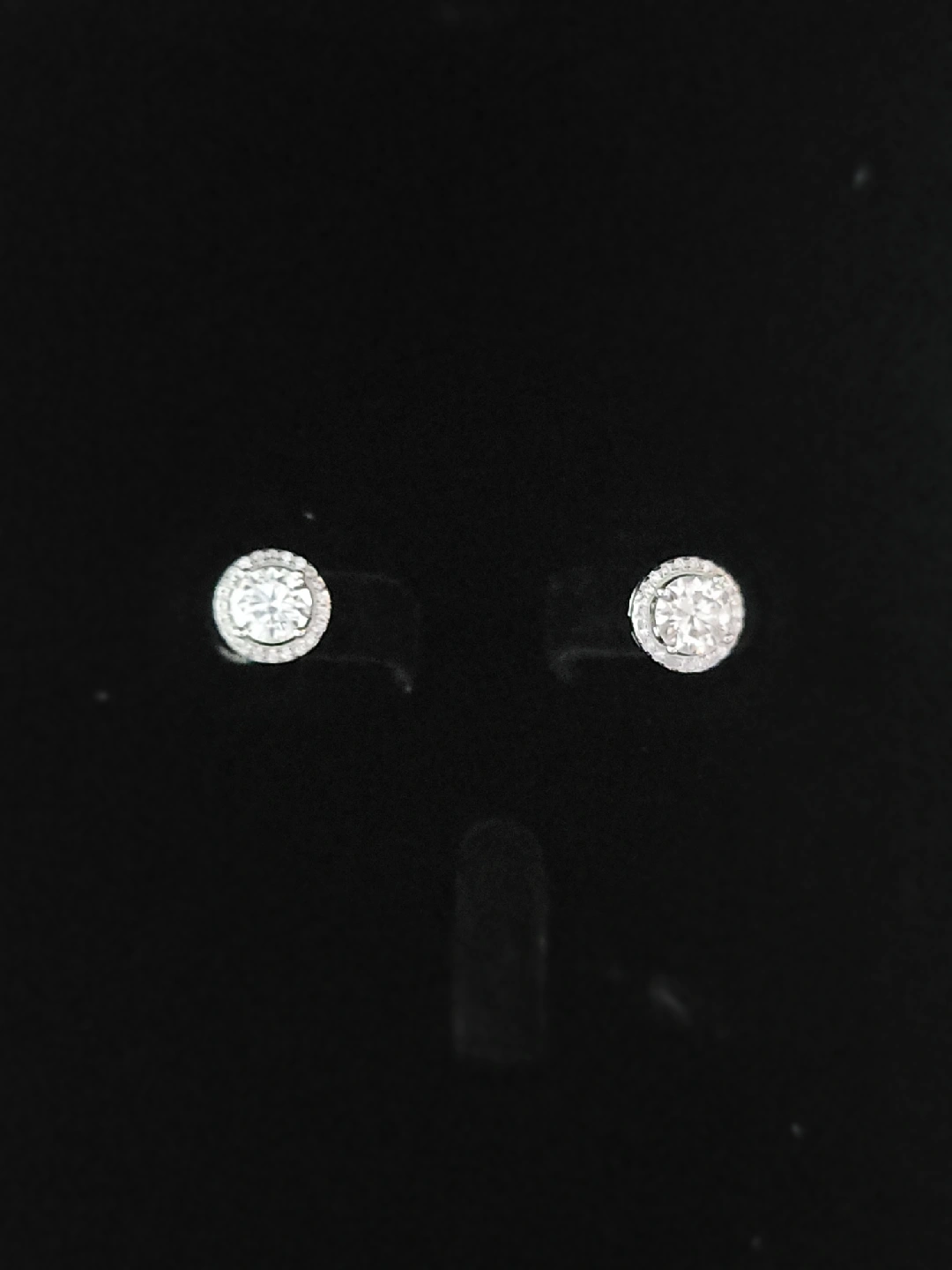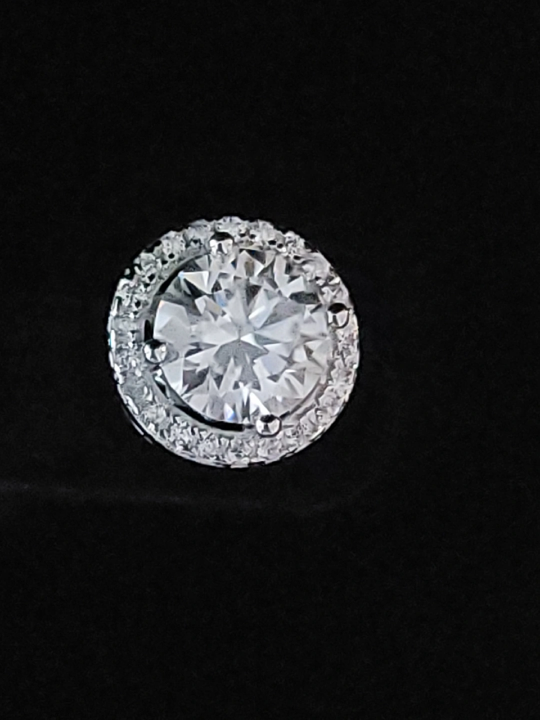 Selling a pair of Halo cut Moissanite earrings! They're 1.00 carat each, with D colour and VVS1 clarity. The shape and cutting style is round brilliant, and measurements are 6.5 mm. Passes diamond test Happy to test it for you on pick up