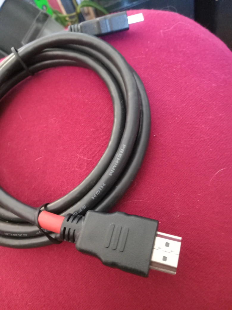 Selling a black HDMI cable. It appears to be in good condition and ready to connect your devices!