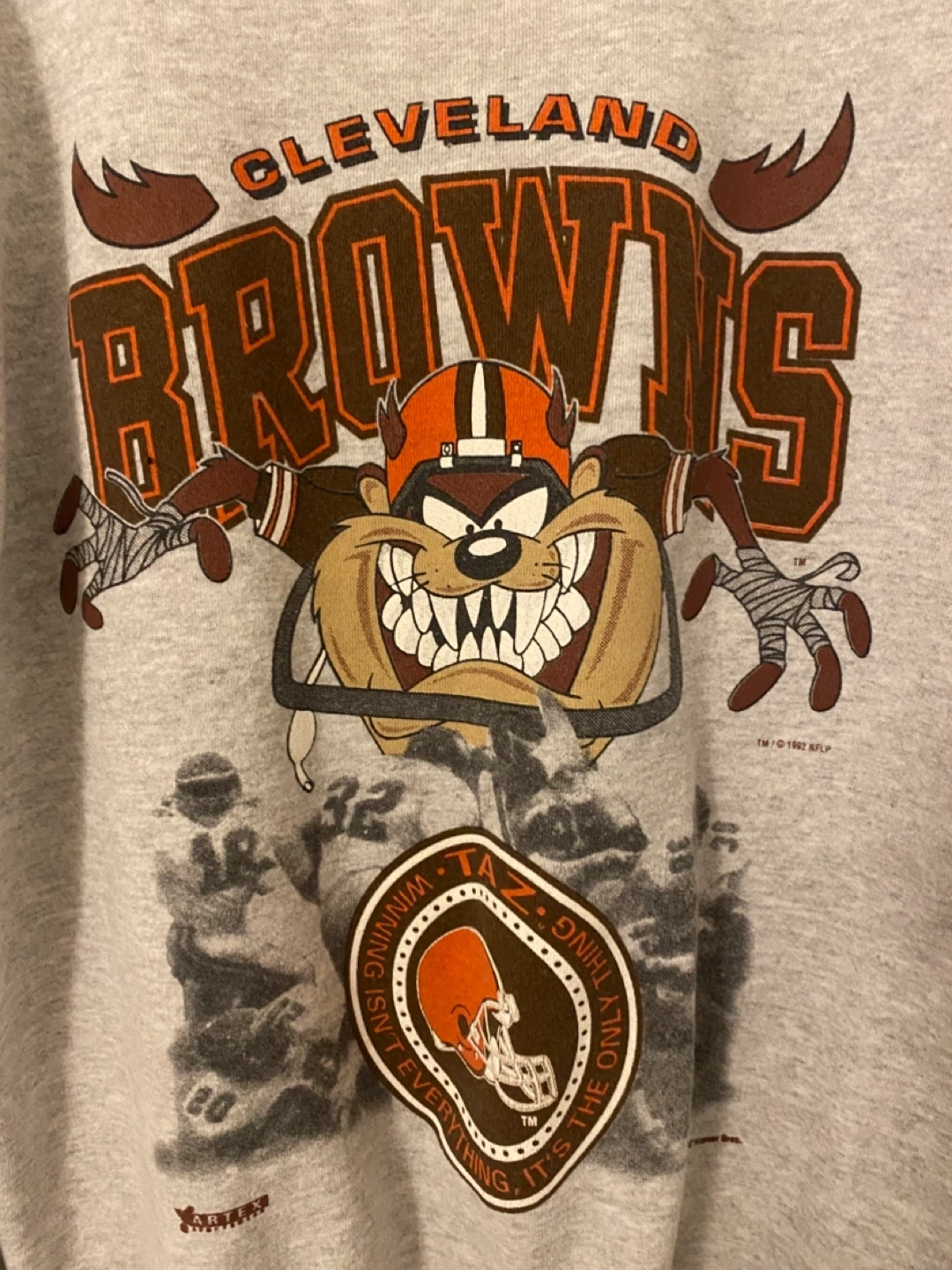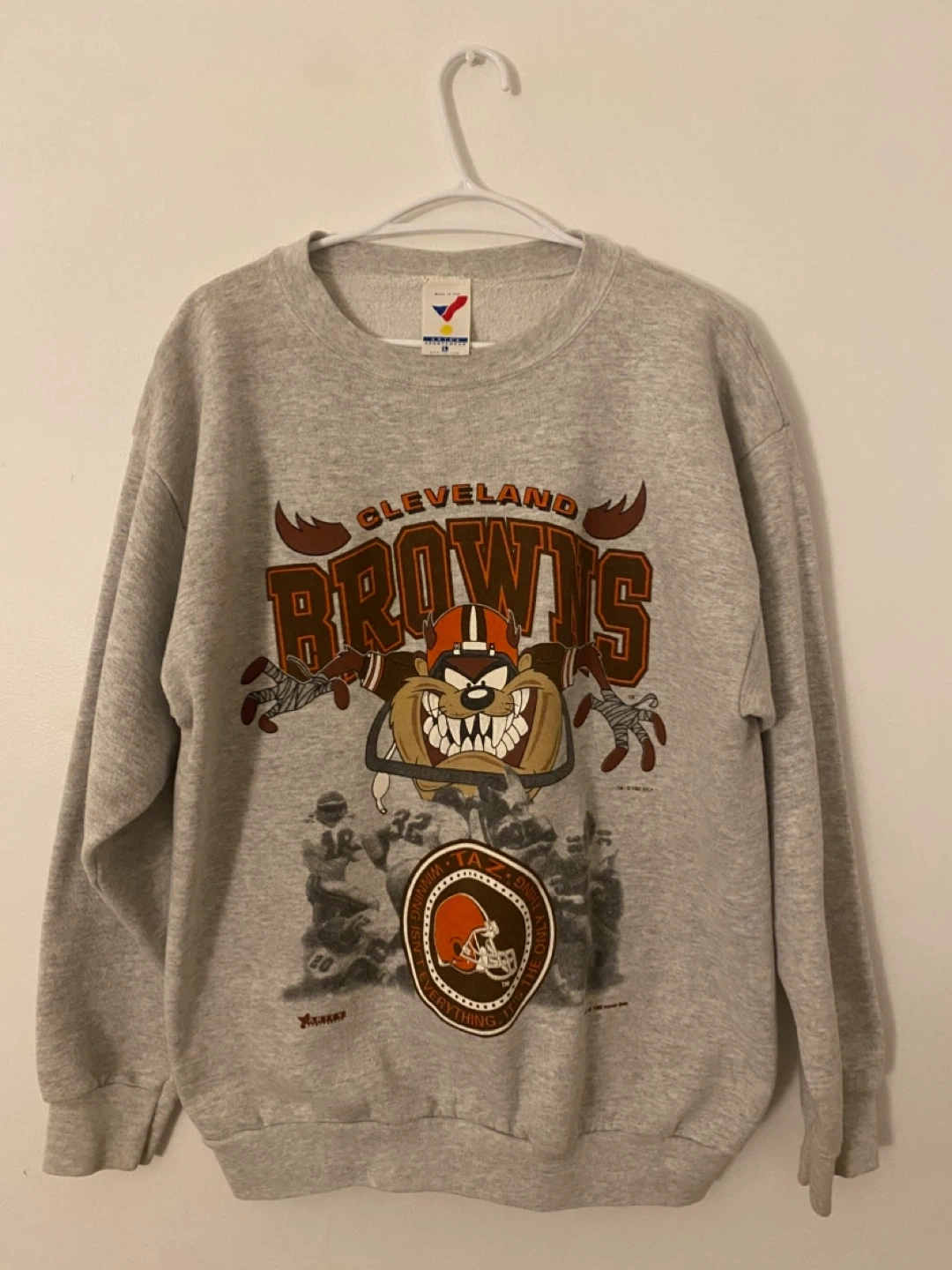 $40 each, 2 for $60, All 3 for $80 Selling vintage Tasmanian Devil / Taz crewneck sweatshirts! UNISEX Grey Cleavland Browns - Size L Dark Green - Size M Heather Grey - Size M
