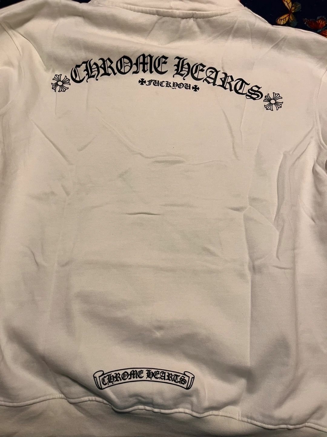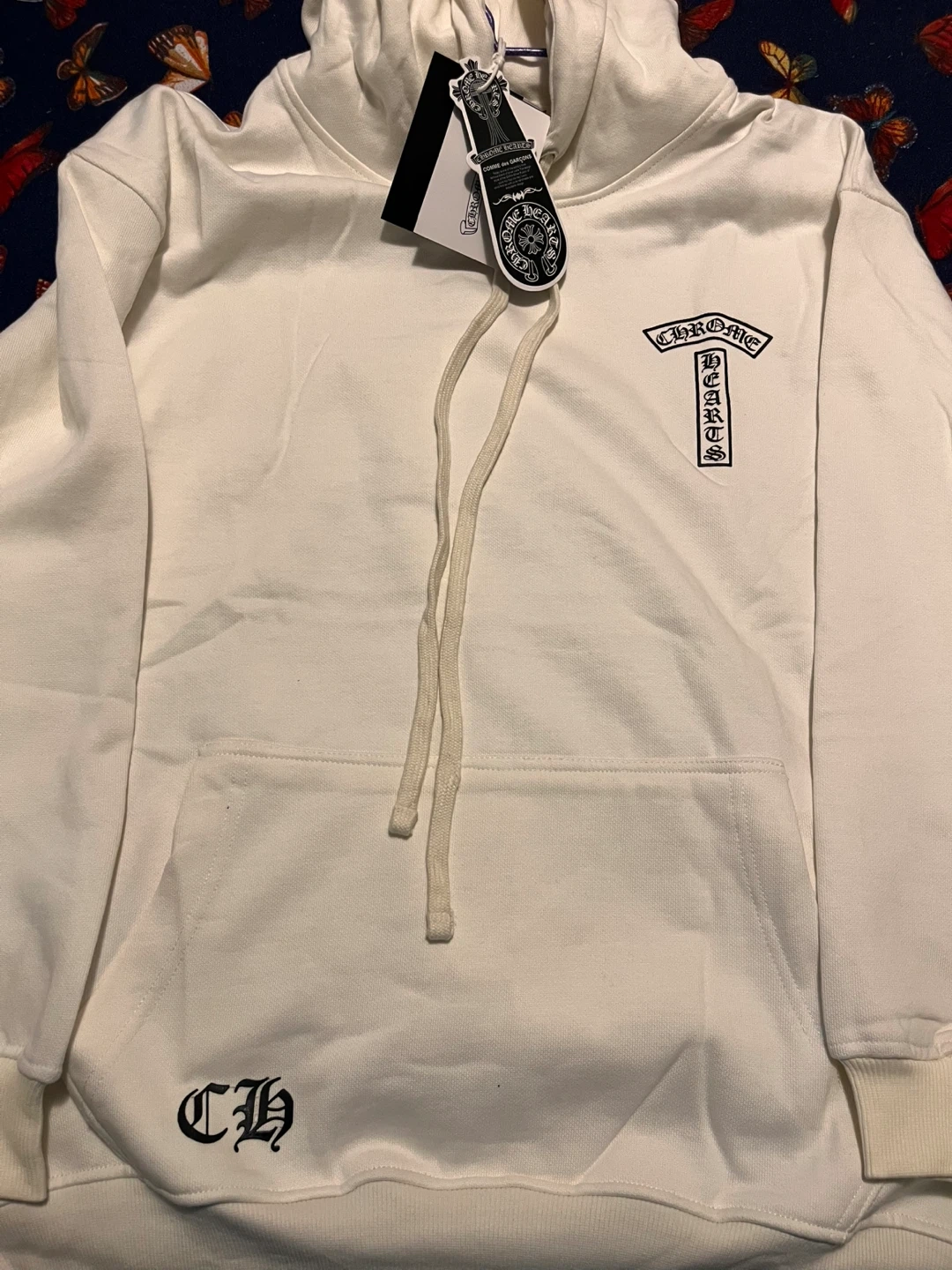 Selling a brand new Chrome Hearts hoodie in white! It has the classic Chrome Hearts logo on the front, back, and sleeves. Never been worn and still has the tags attached. Perfect for any Chrome Hearts fan!