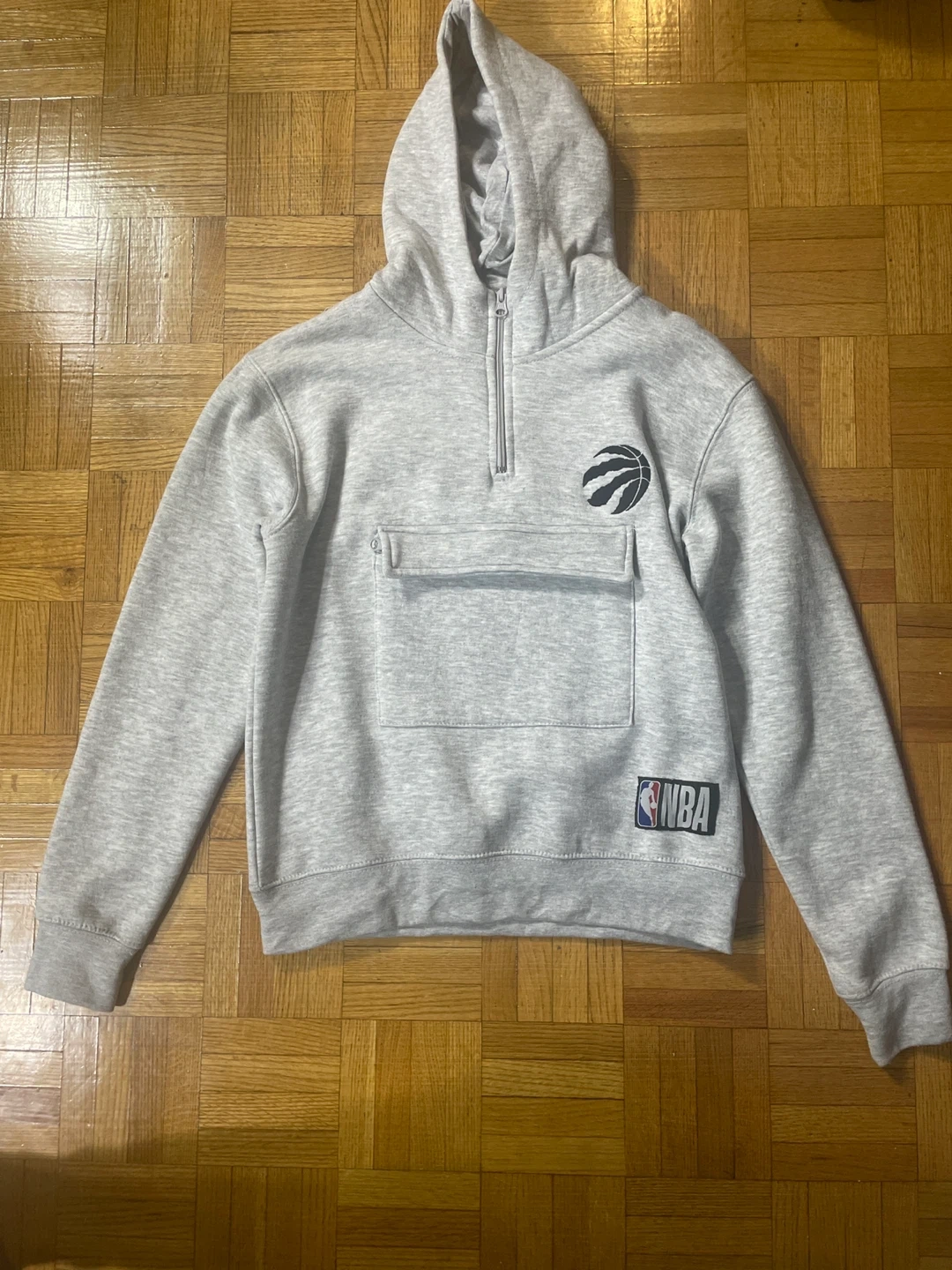 Selling a grey NBA Toronto Raptors hoodie! It's in great condition and features the Raptors logo. Perfect for showing your team spirit!