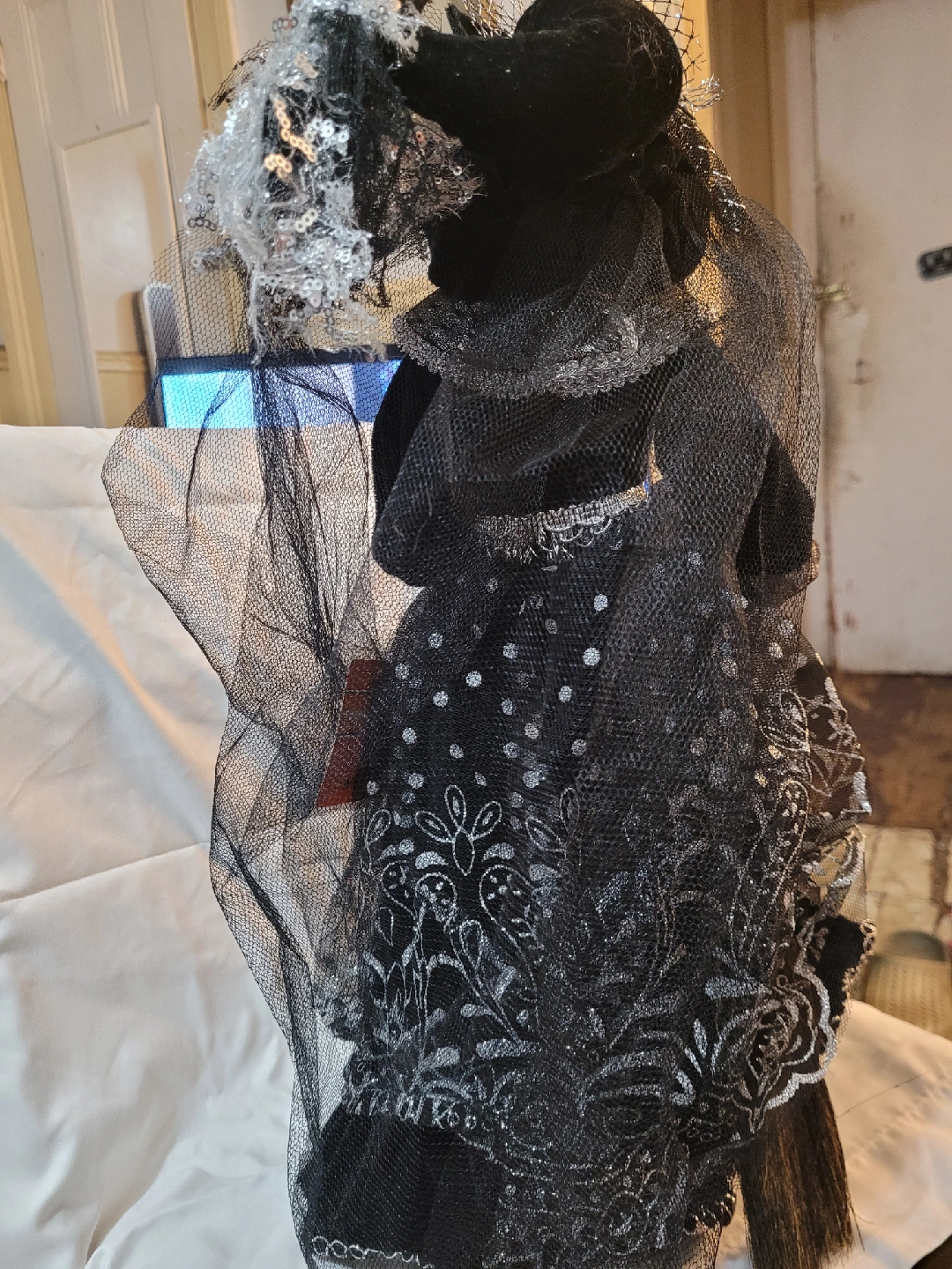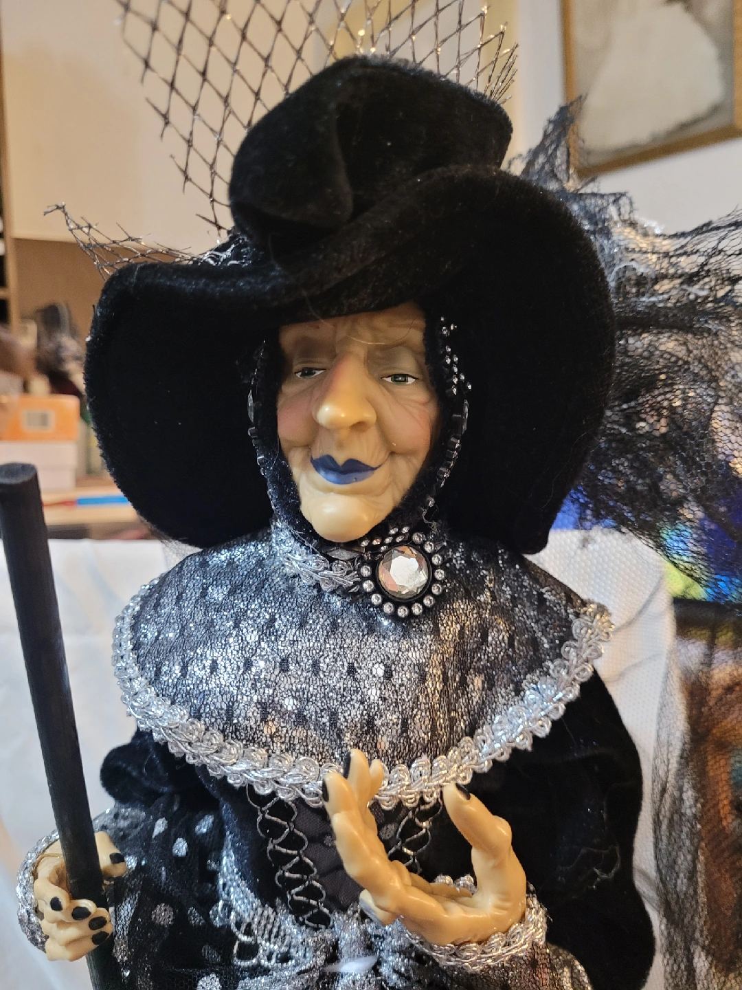 Black/White/Silver Decorative Witch Doll - 20 inch NWT!