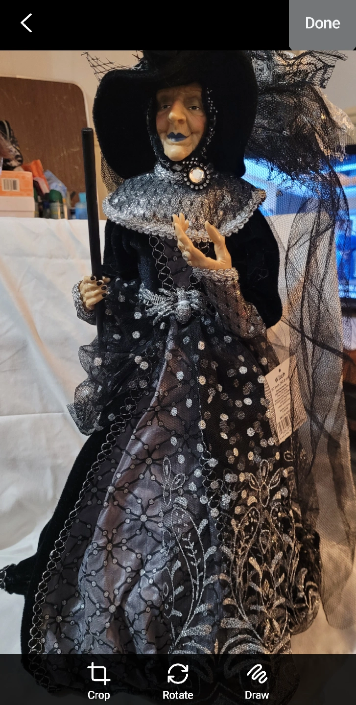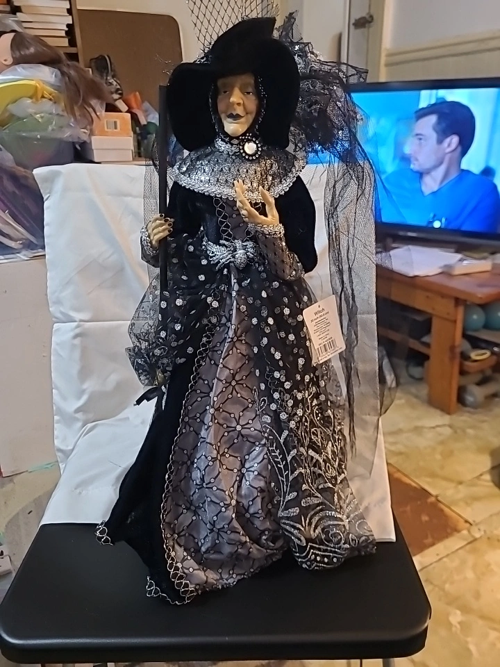 This is a beautiful witch doll, measuring 20 inches in height! It features intricate details and is perfect for Halloween decor or collectors- it is BRAND NEW WITH TAGS!