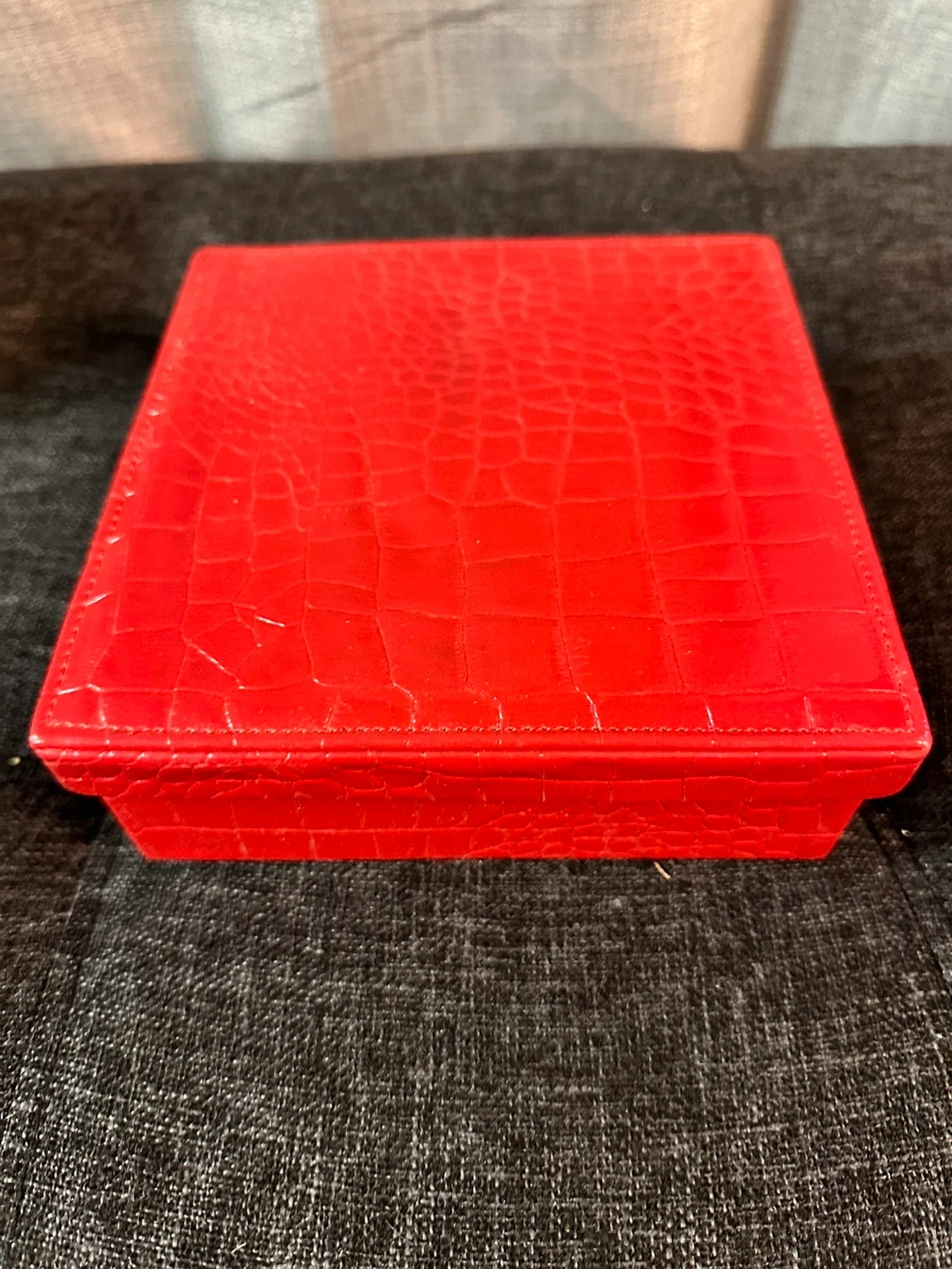 The set comes in a beautiful red box with a crocodile pattern. It's in great condition and perfect for gifting or treating yourself for storing small items or jewelry!