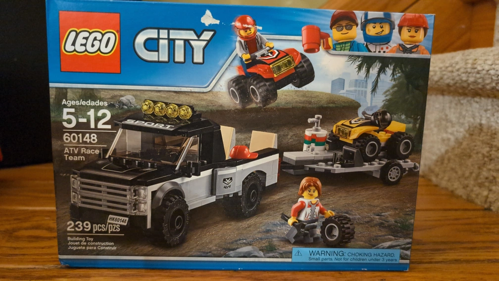 UNOPENED: Selling a LEGO City ATV Race Team set, model number 60148. This building toy is suitable for ages 5-12 and contains 239 pieces. Perfect for young builders!