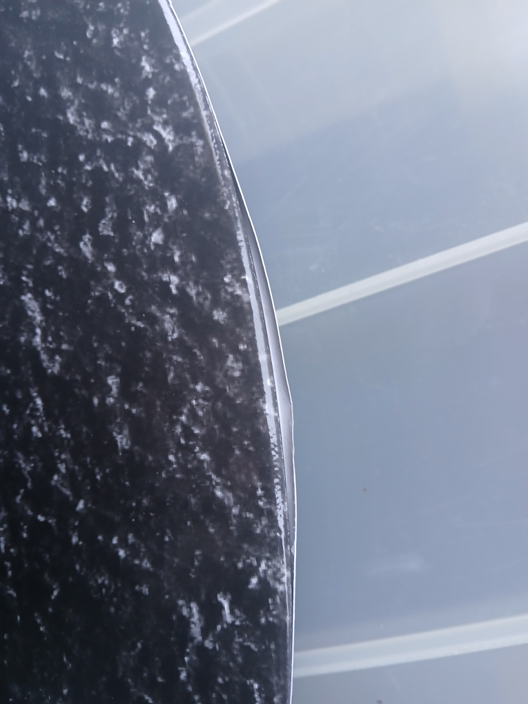 New, the laminate/outer layer is peeling up a little in some spots (see picture).