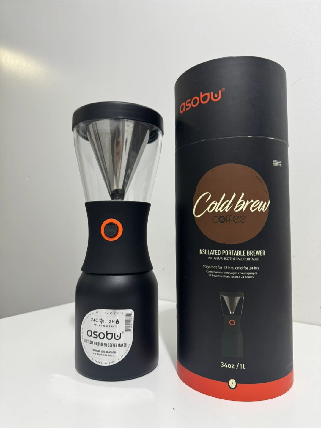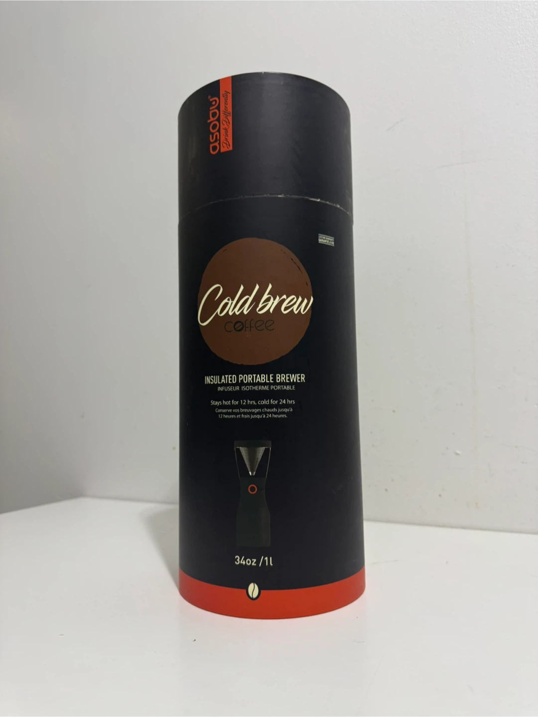 Keep your coffee cold with this insulated portable brewer by Asobu! It stays hot for 12 hours, or cold for 24 hours. It has a 34oz/1L capacity and is in excellent condition. Perfect for on the go!