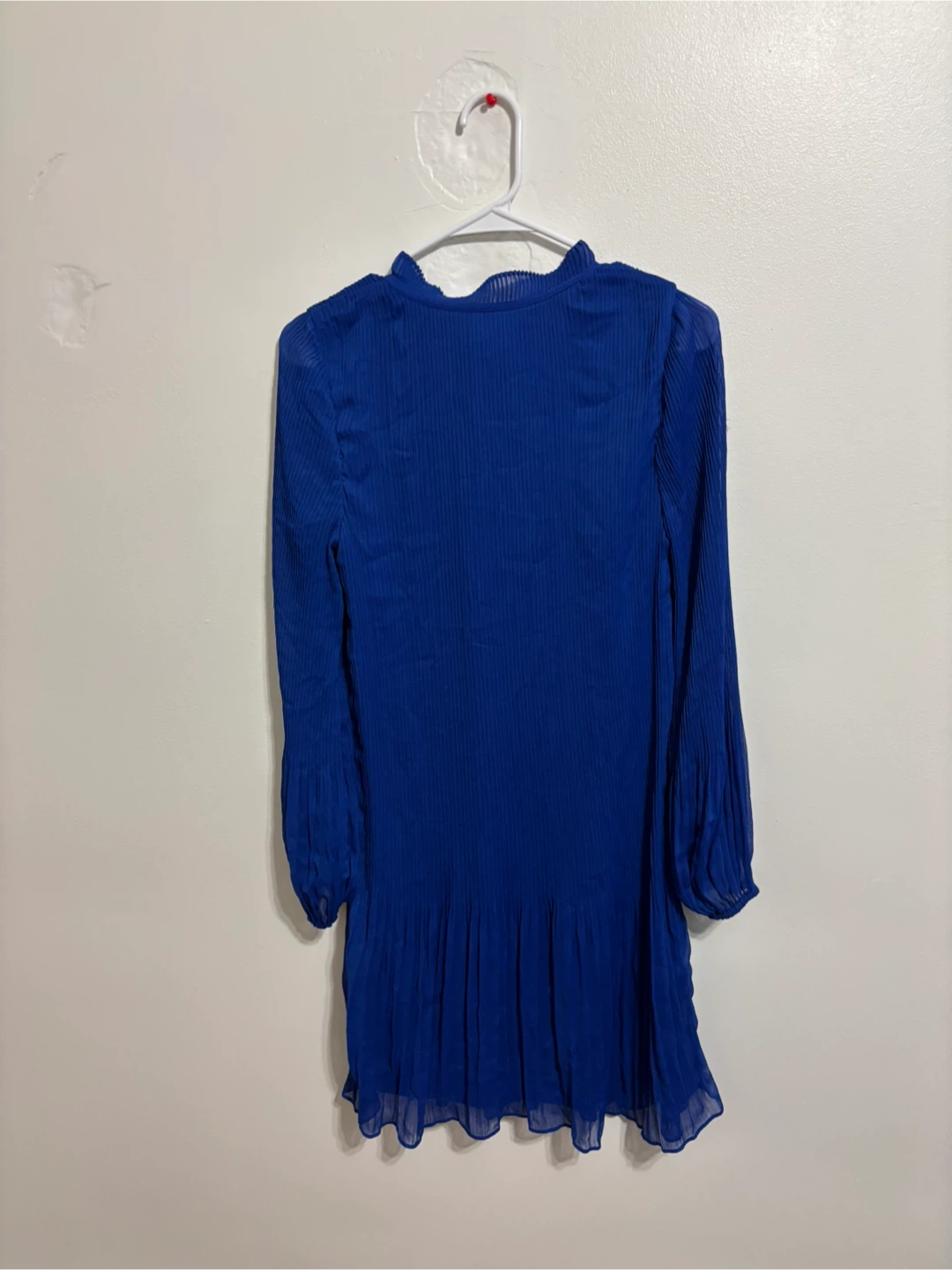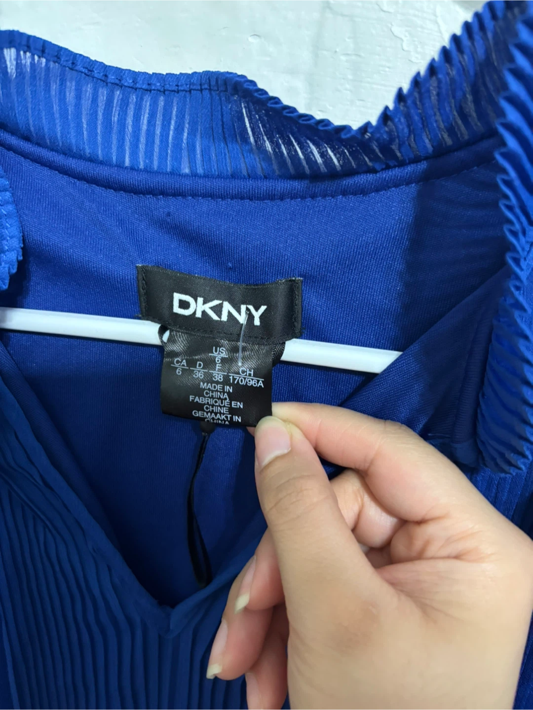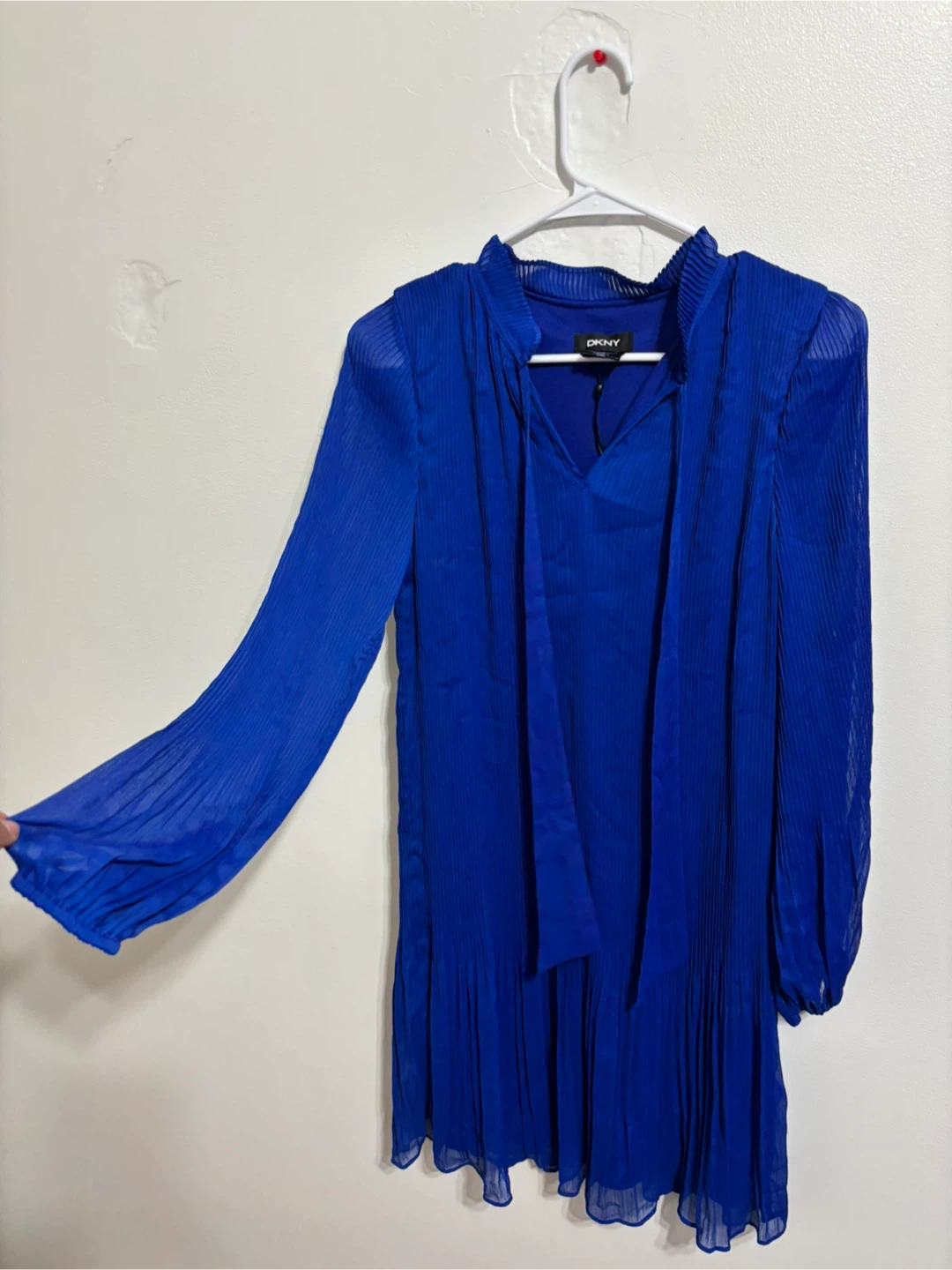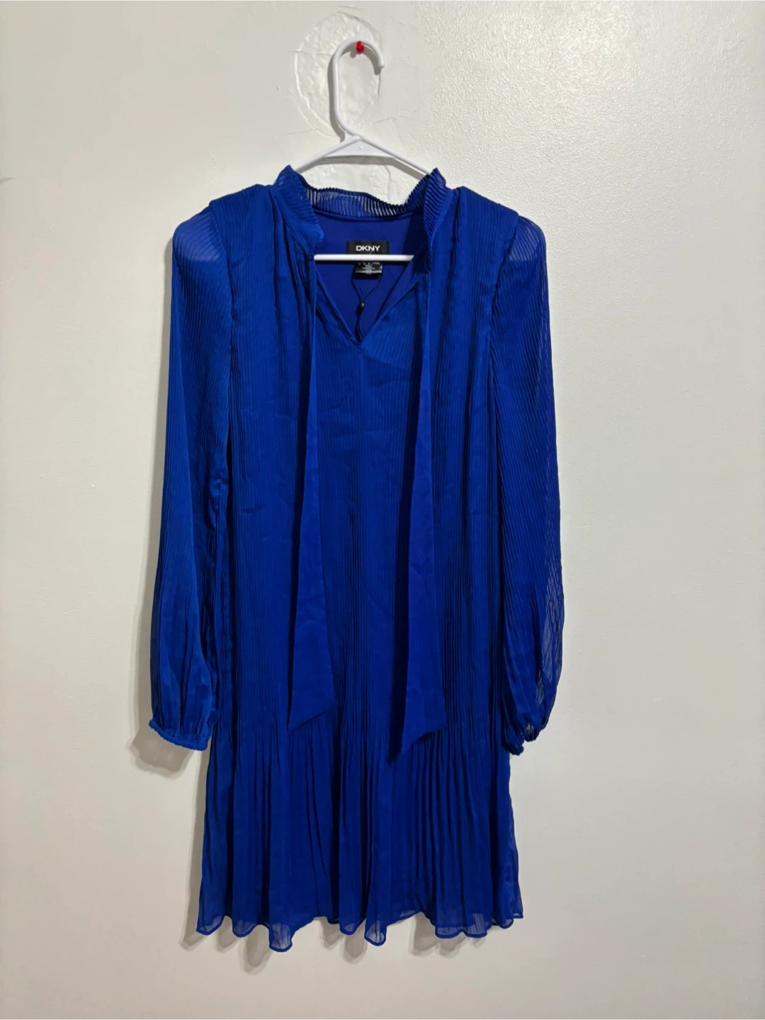 Selling a DKNY dress in a beautiful blue colour! It's a size 6 and features a pleated design. Perfect for a special occasion or a night out