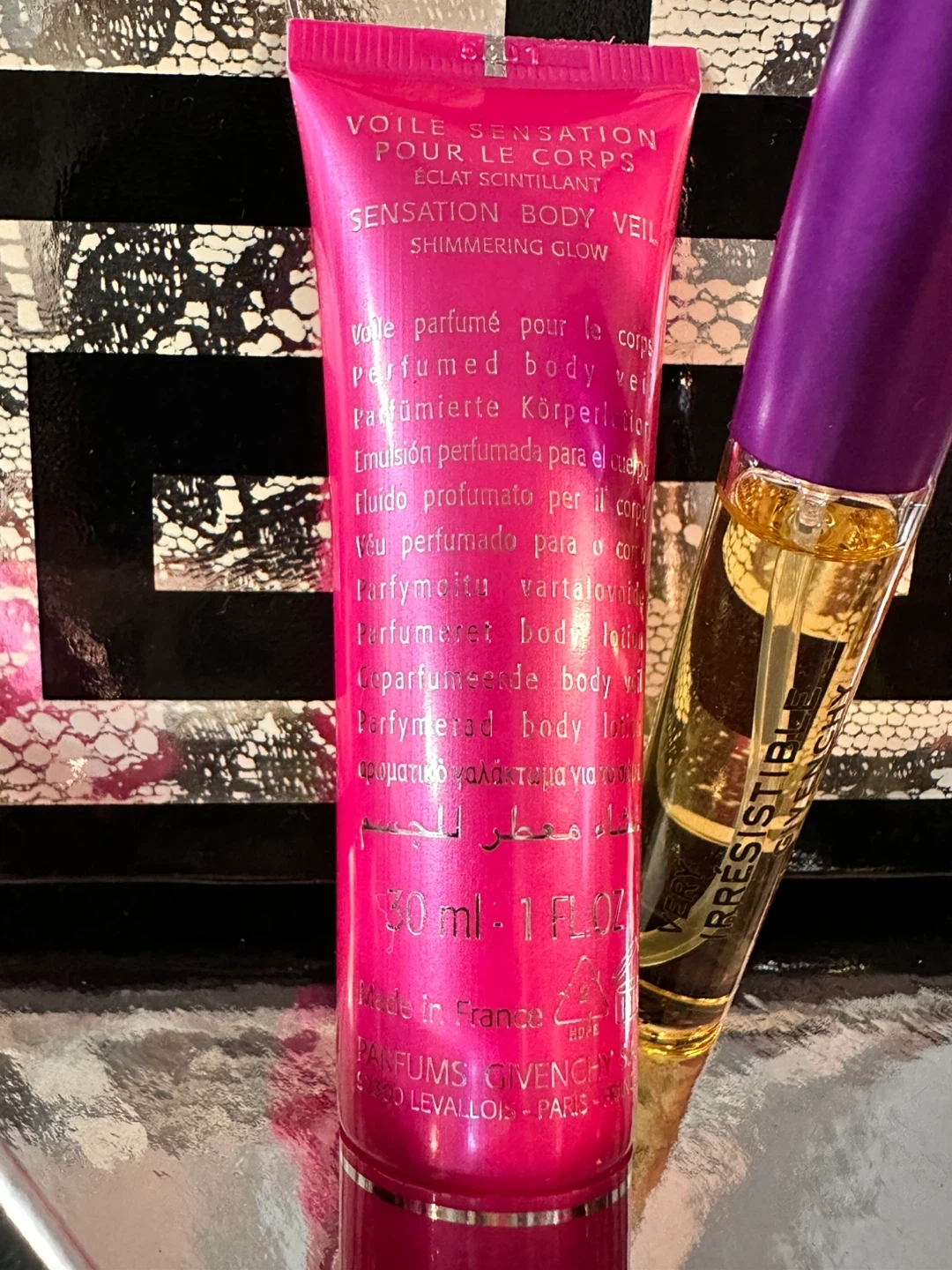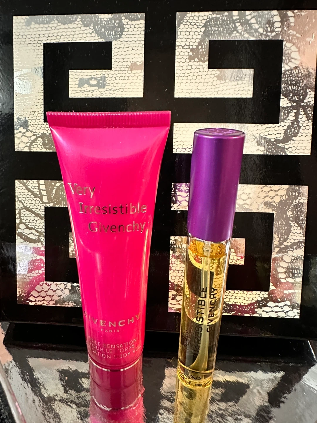 Selling a Givenchy Very Irresistible perfume and body veil set. - perfume is a 0.26 fl oz / 8 ml spray $35 - body veil is a shimmering glow sensation body veil, 30 ml / 1 fl oz. $45 Perfect for adding a touch of elegance to your day!