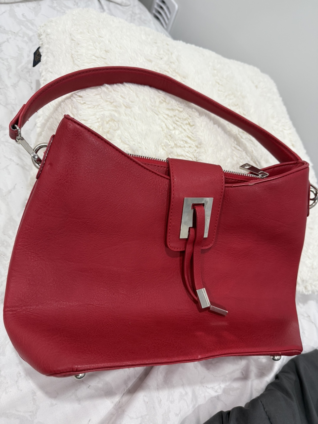 A stylish red shoulder bag, perfect for adding a pop of colour to any outfit! It's in great condition and ready for a new home. The purse also has an extended hand for preference