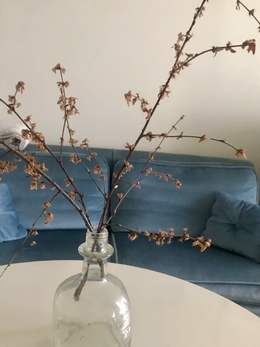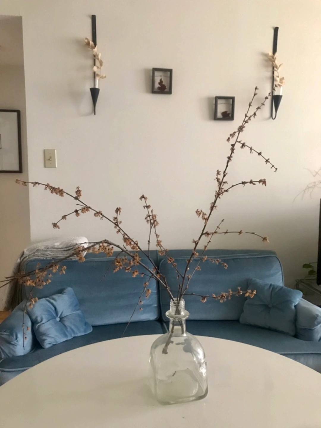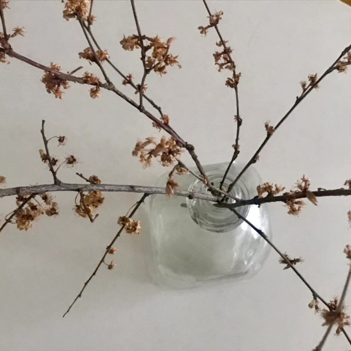 A beautiful Cherry Blossom & Branch setting in a glass holder. Bring the delicate, minimal & Zen esthetic to any space in your home or office. It adds a poetic & peaceful look and vibe to your environment.