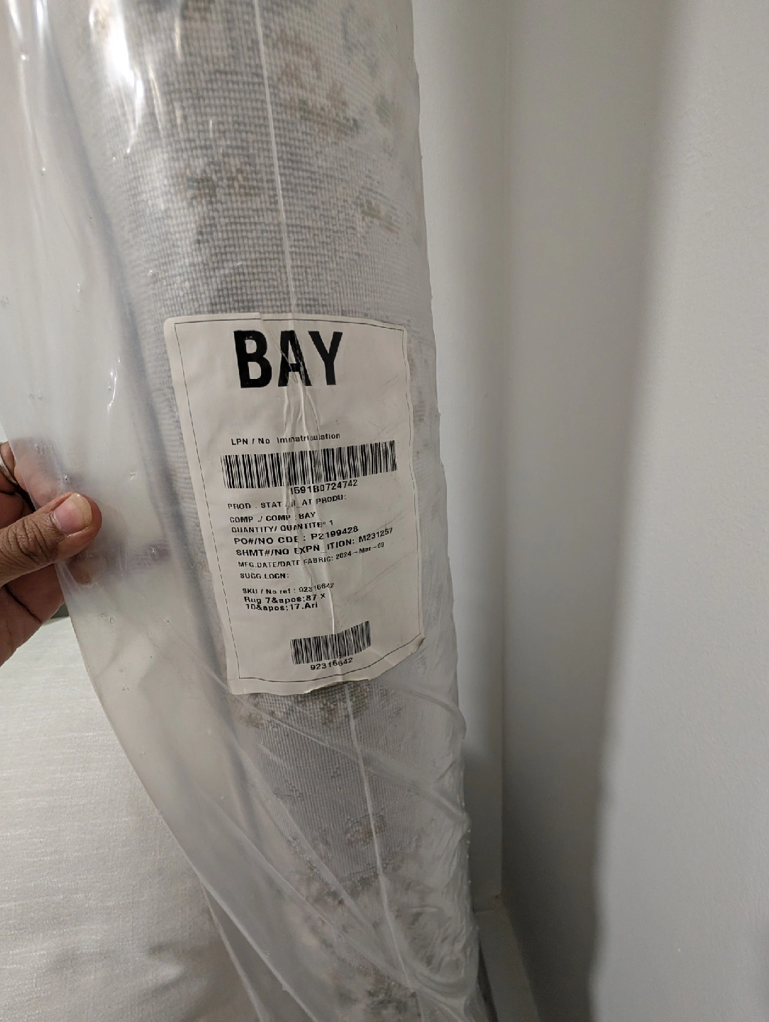 Selling a Renwil Rug Art area rug, still in its original packaging! The rug measures 240x310 cm, which is about 7.87x10.17 ft. It's made in Turkey and the material is 100% polyester