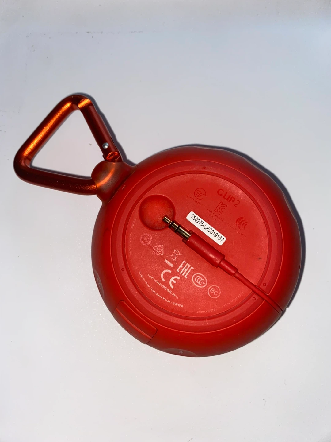 39Selling a JBL Clip 2 portable Bluetooth speaker in red! It's in great shape and ready to clip onto your bag or belt loop. Perfect for taking your tunes on the go. This speaker is super lightweight and portable, making it an awesome companion for outdoor adventures or just chilling in the park