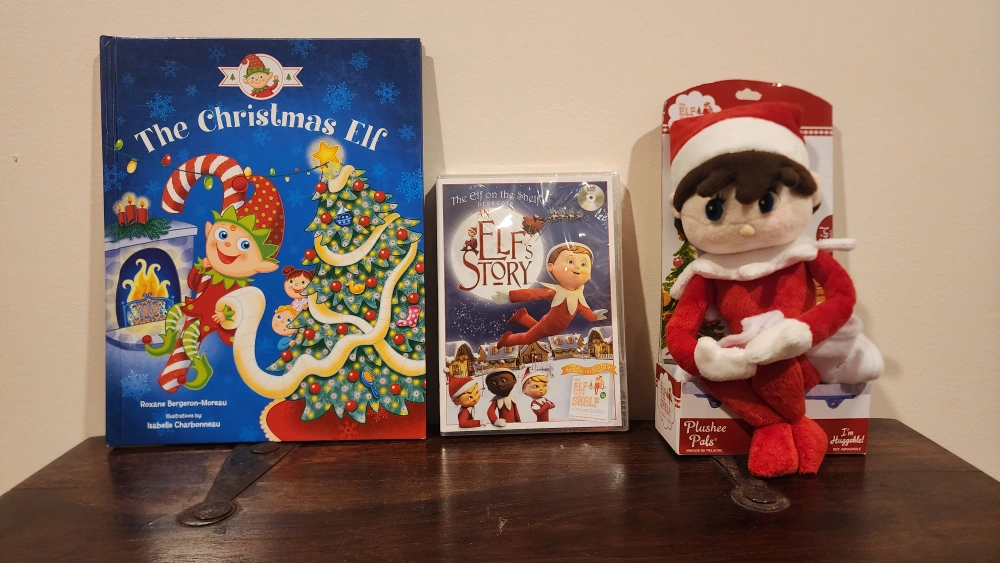 Selling a copy of "The Christmas Elf" book by Roxane Bergeron-Moreau and Isabelle Charbonneau, along with an Elf on the Shelf Plushee Pals plush toy and DVD! All brand new and unused/unopened.