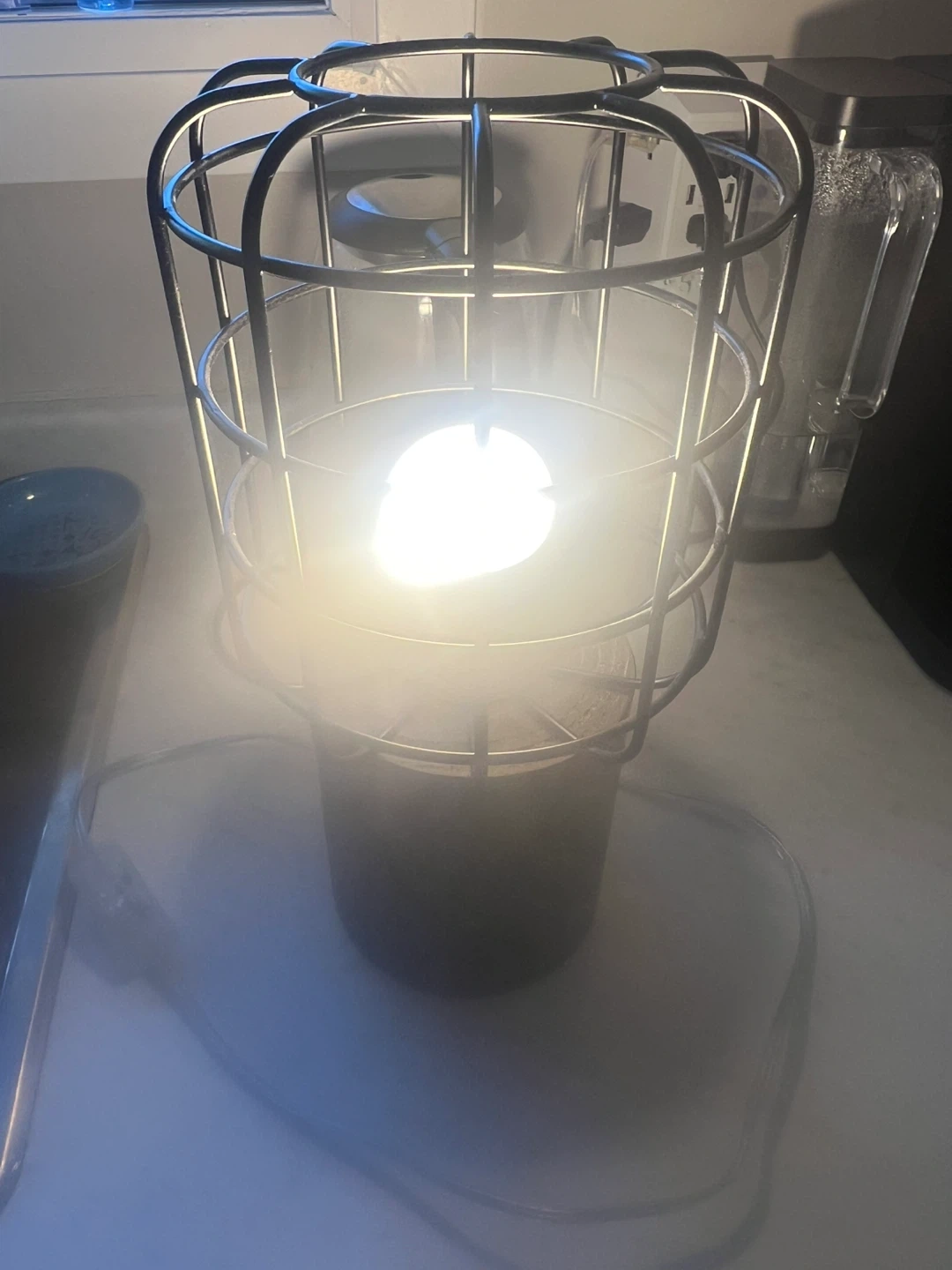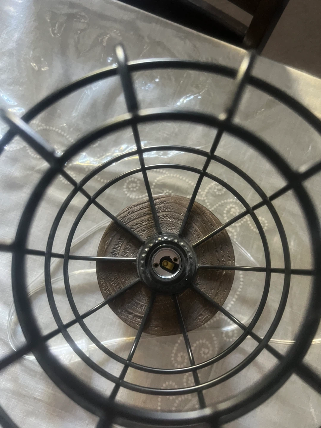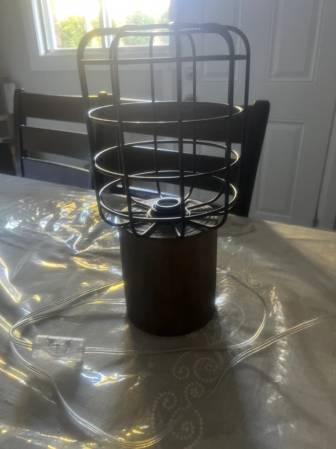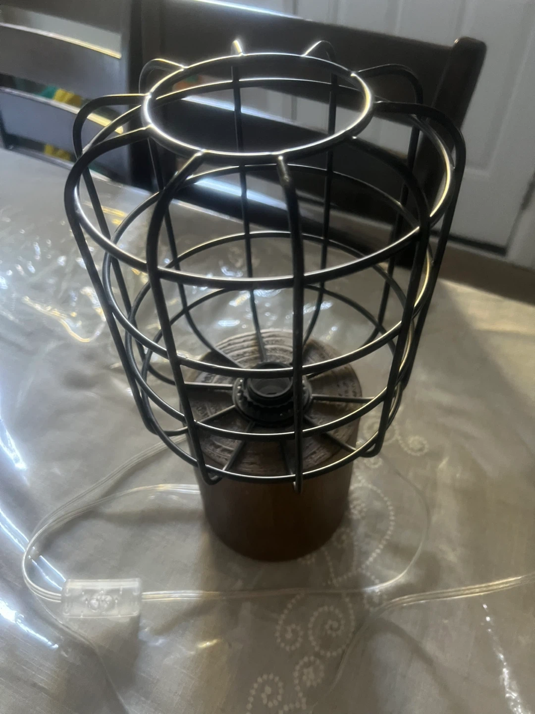 Add a touch of industrial charm to your space with this unique cage table lamp! The metal cage design and wooden base create a cool, rustic vibe. Perfect for a bedside table, desk, or living room accent