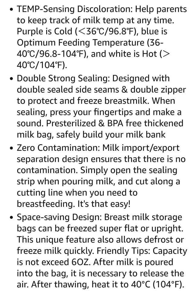 Temp sensing bags to keep track of milk temp any time.