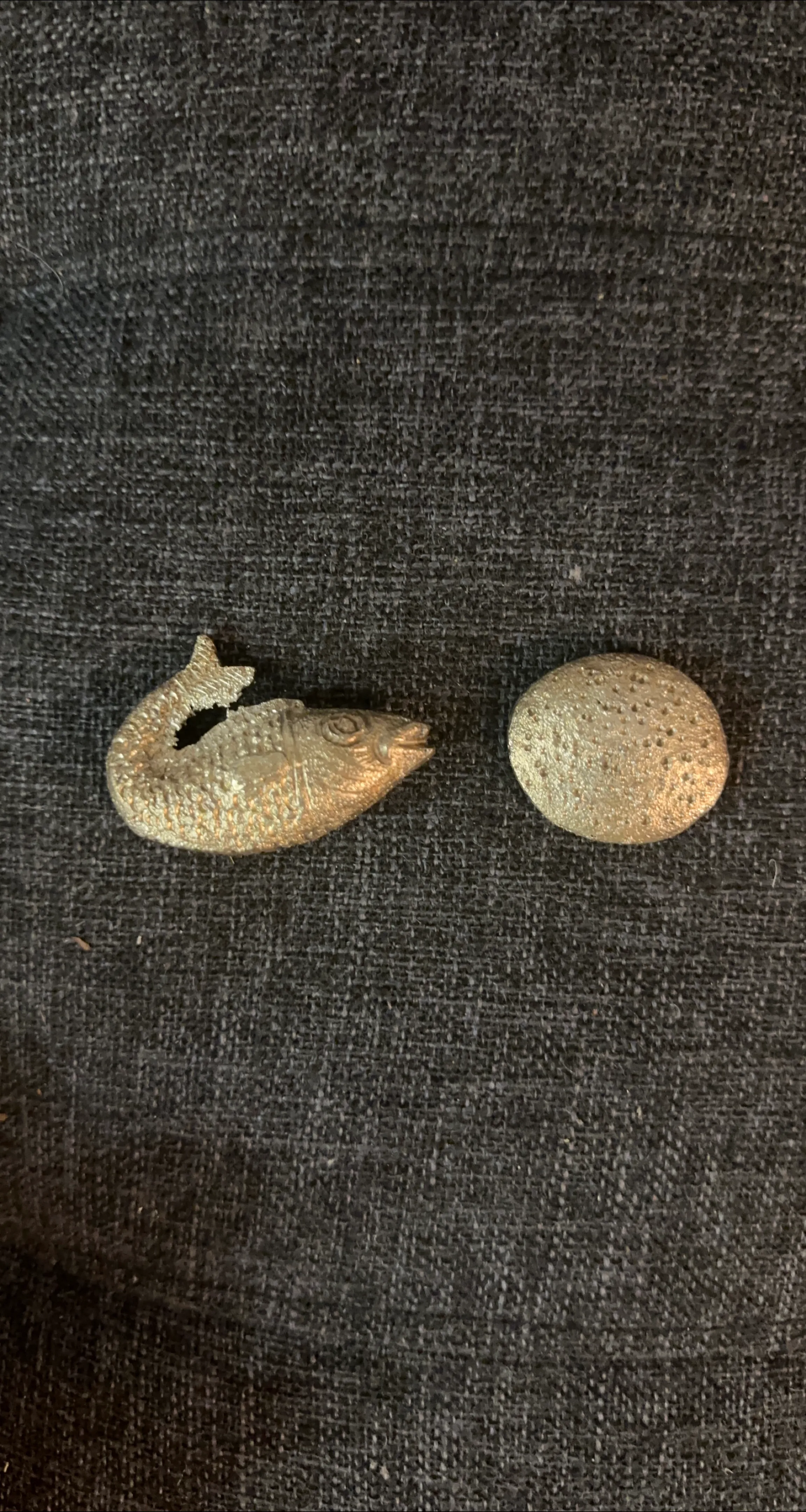 Selling a decorative fish and oval stone. They have a unique texture and would be great for a craft project or as a decorative item like a paper weight!