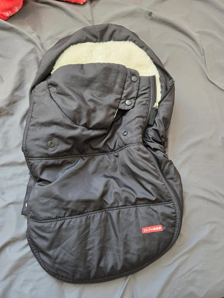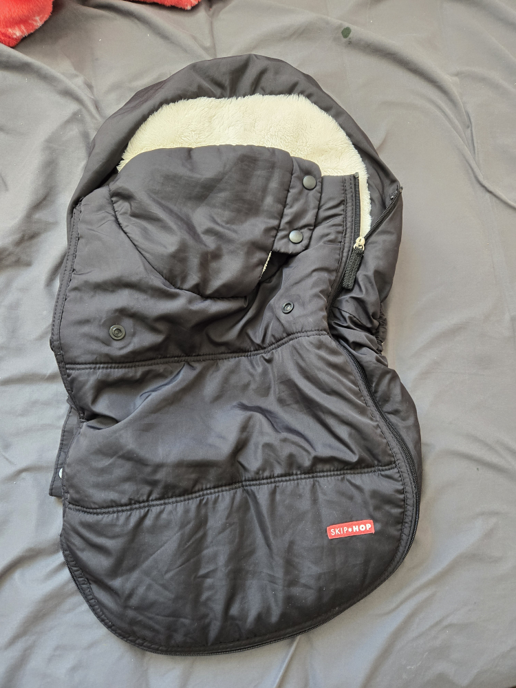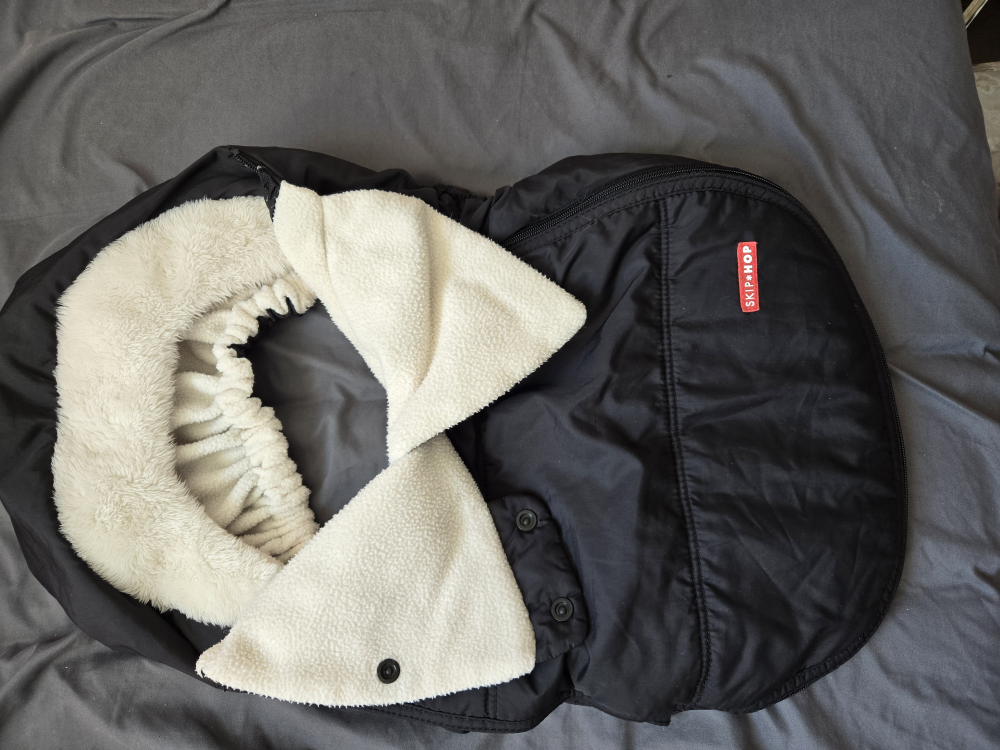 Keep your little one warm and cozy with this Skip Hop Stroll & Go Three-Season Footmuff! It's in great condition and perfect for chilly weather strolls. Features a soft, plush lining to keep baby snug and warm.