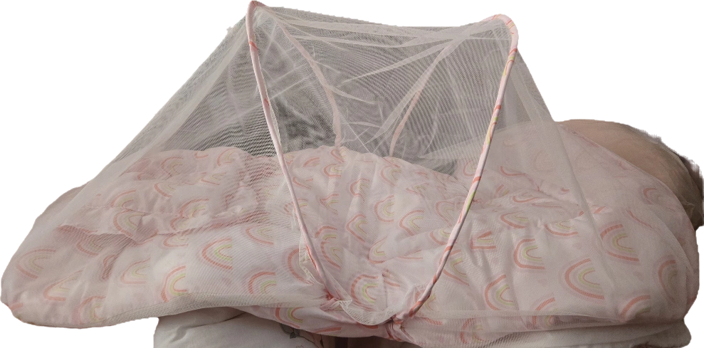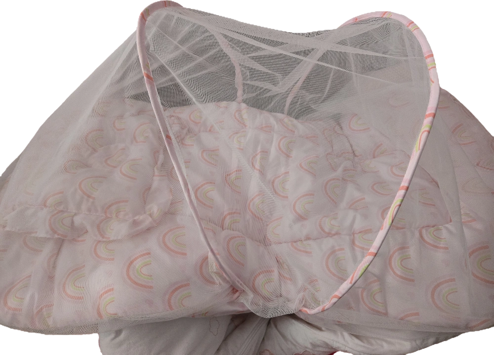 A baby mosquito net bed with a cute rainbow pattern! It's perfect for keeping your little one safe from bugs while they sleep. The net is lightweight and easy to set up