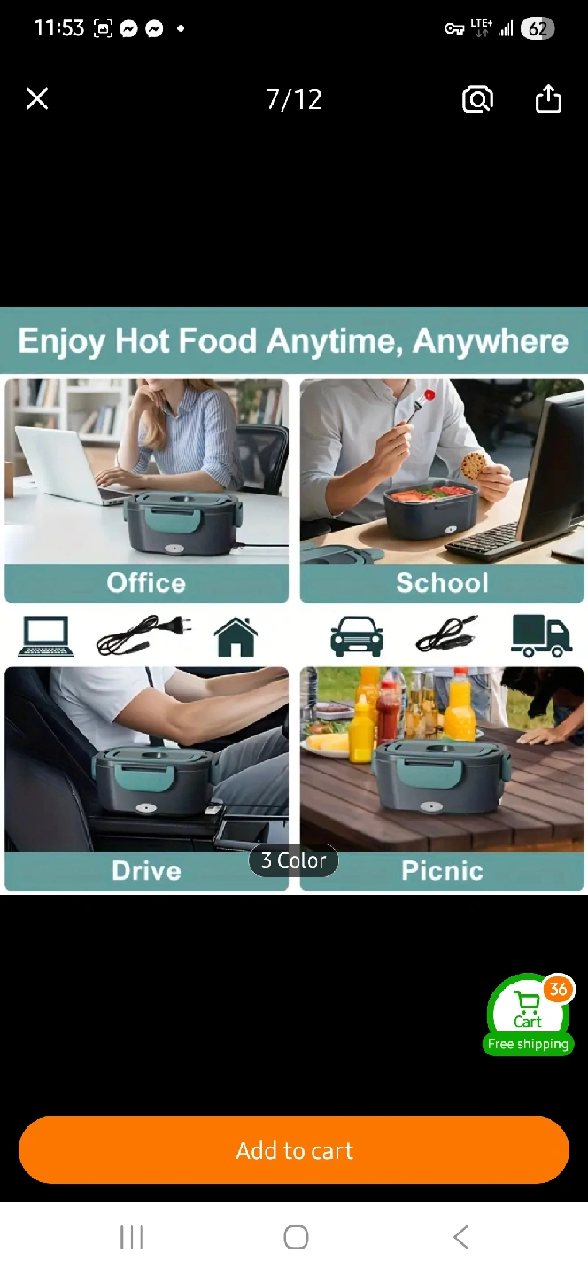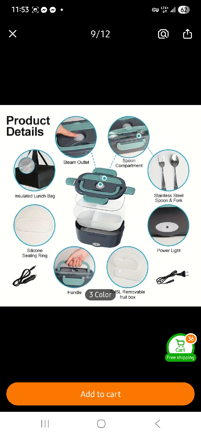 Keep your food warm on the go with this electric lunchbox! It comes with a carrying bag, spoon, and fork. It has a 1.5L capacity and a removable 0.45L box. Perfect for the office, home, or school!