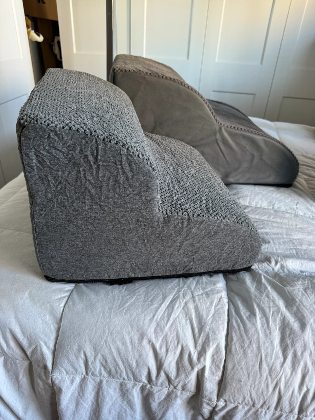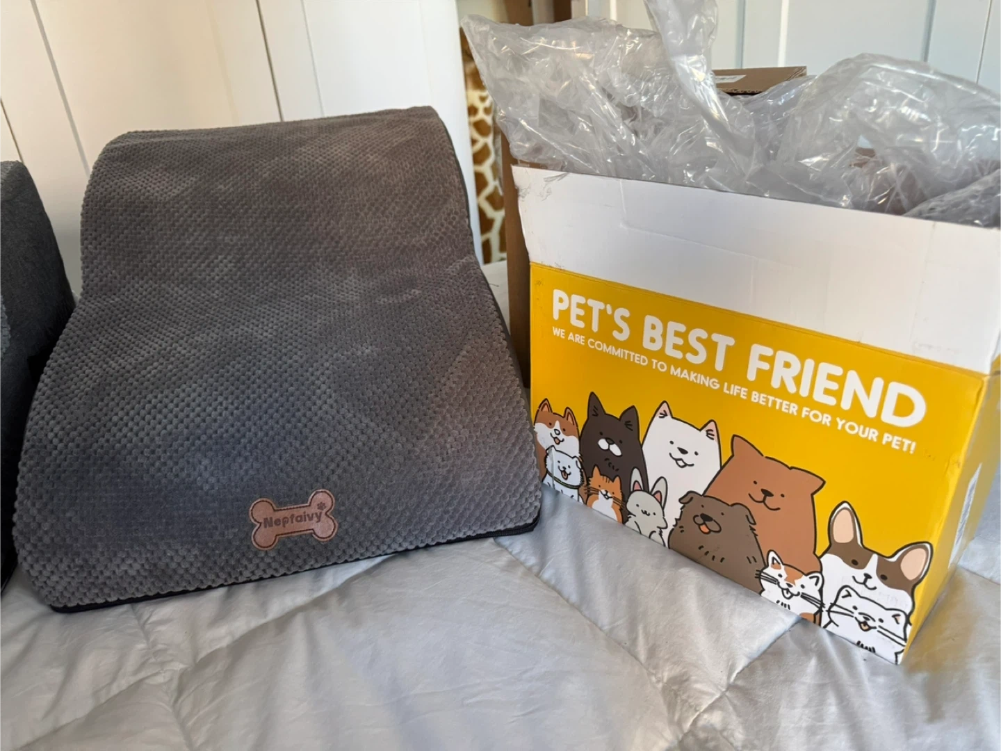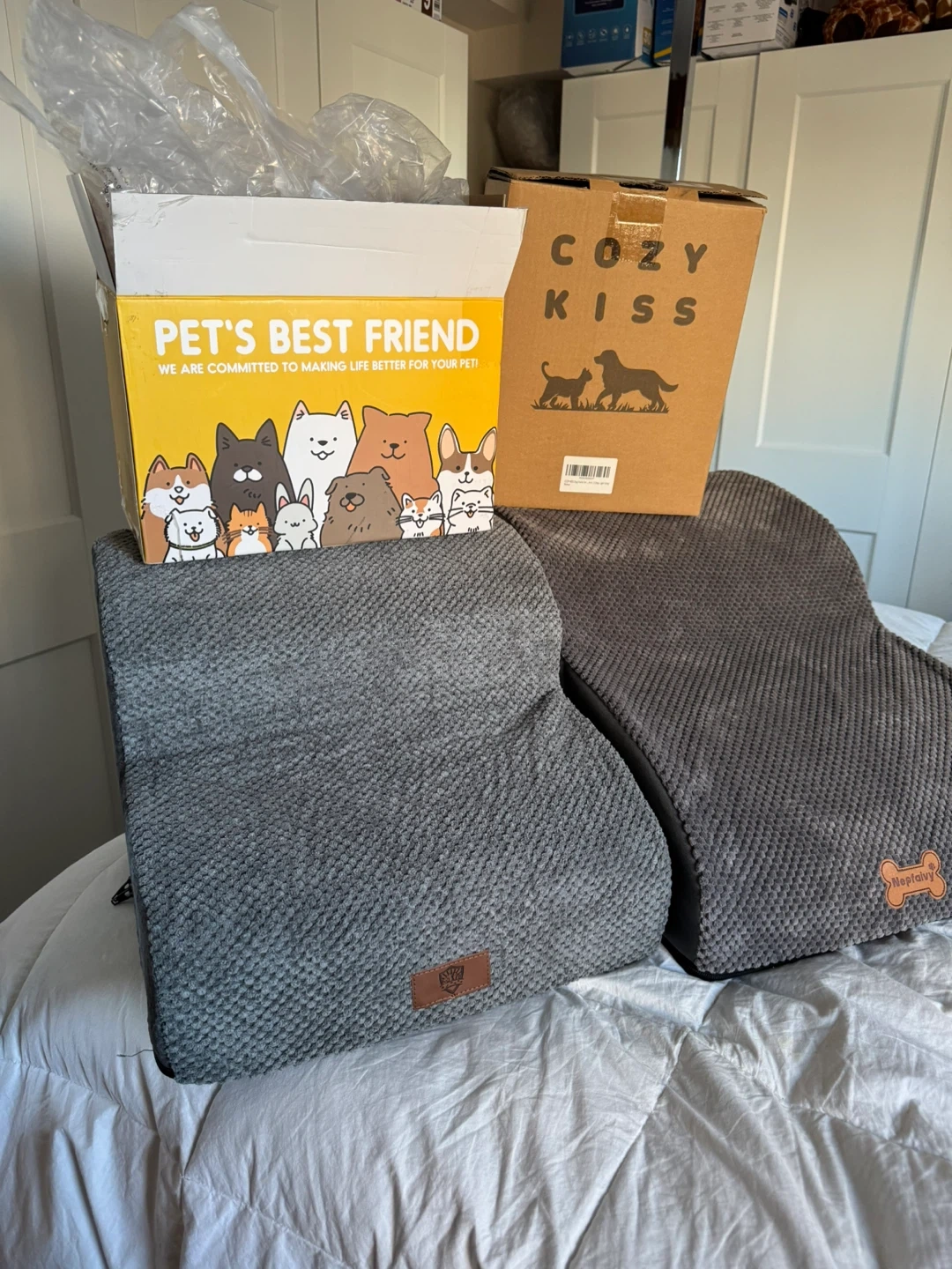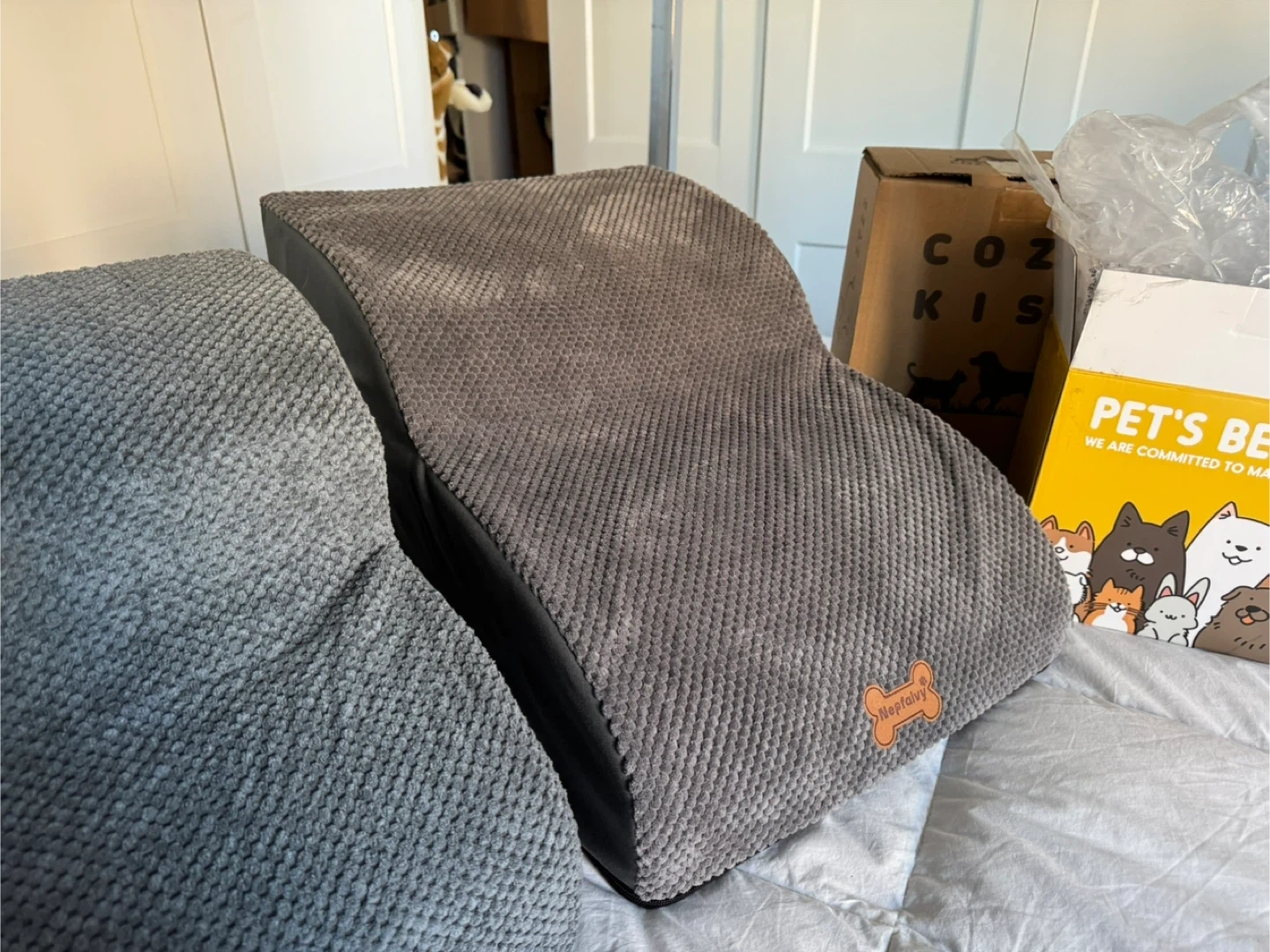 One 12” inch Brand New Dog Steps with Box Still Available $25 SOLD - Short two step 12 inches high by 15 1/2 inches long by 15 1/2 inches wide AVAILABLE - Middle elongated two step 12 inches high 21 1/2 inches long 16 inches wide Both are brand new, freshly taken out of there boxes, just to take the photos, I can bring down the boxes as well $25 each Firm Both are Brand New Pick up in the lobby of my condo located in Scarborough at Finch and McCowan