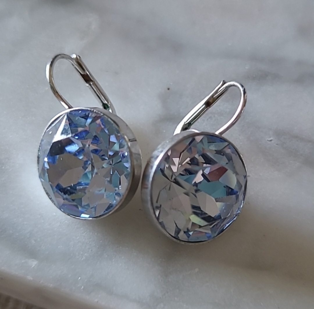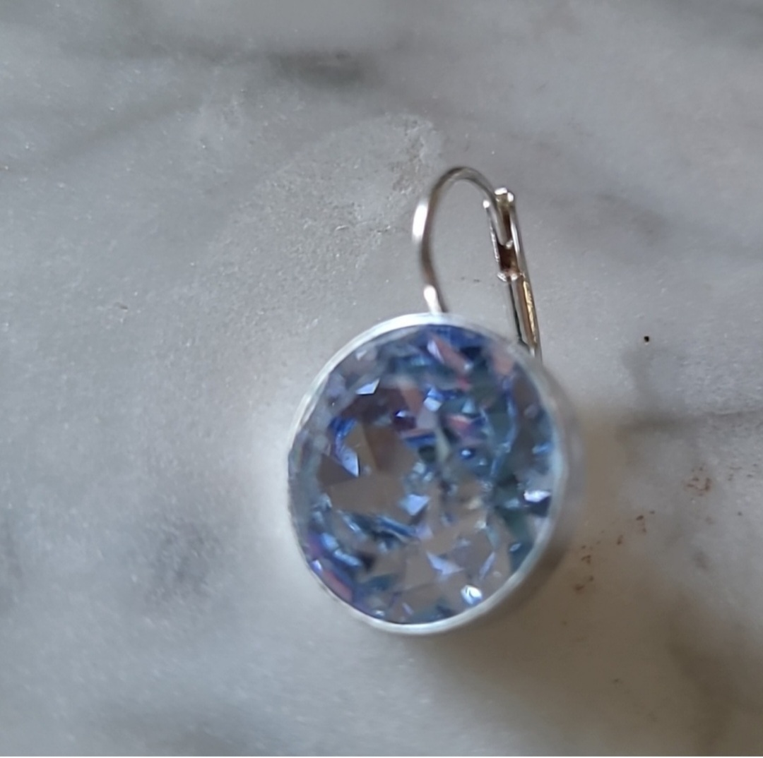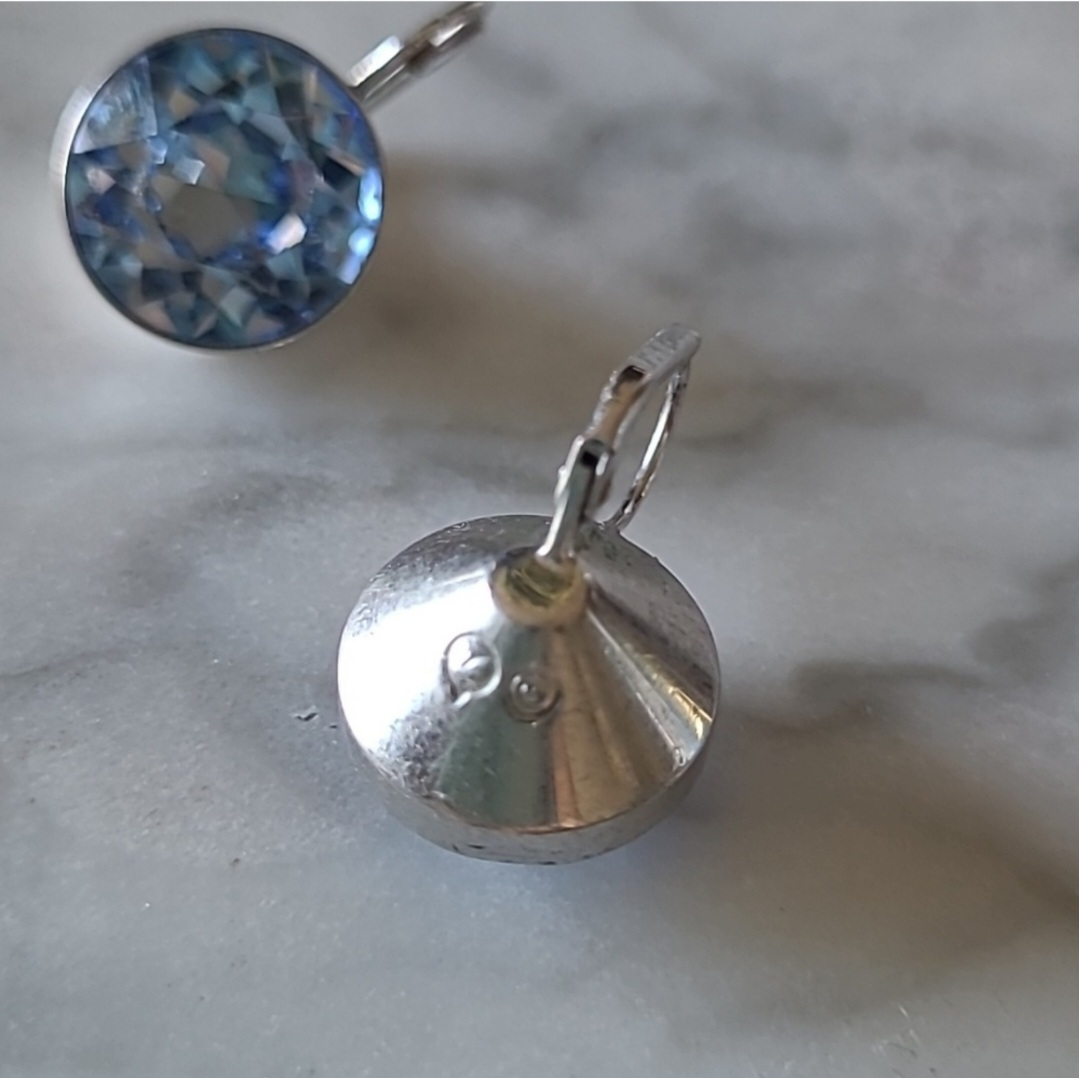 These are a beautiful pair of Swarovski crystal drop earrings! They feature a lovely light blue crystal. Perfect for adding a touch of sparkle to any outfit.