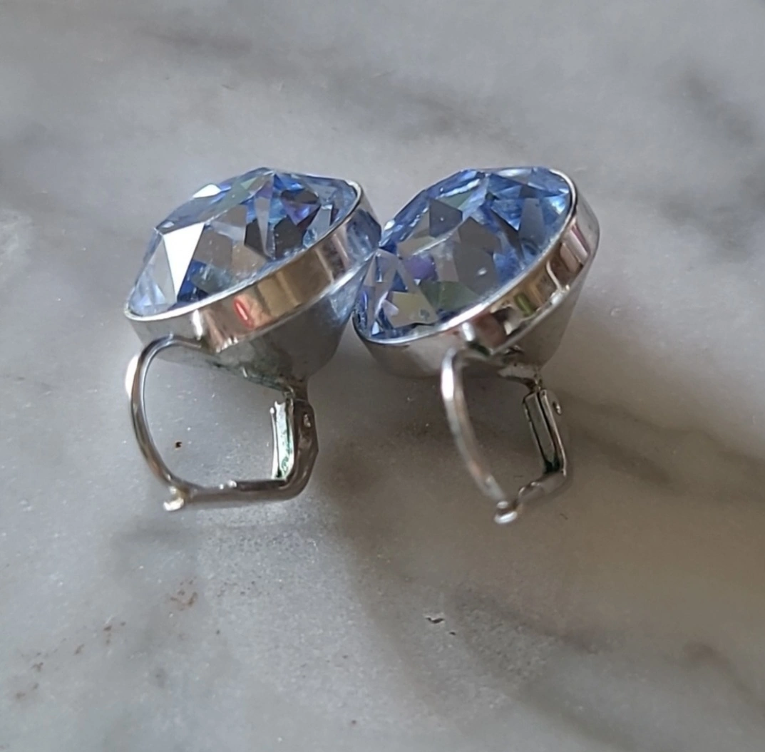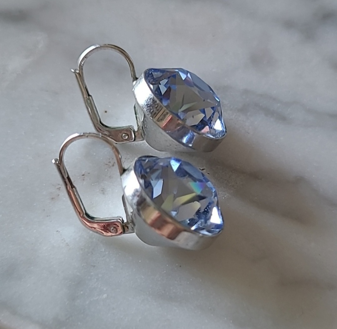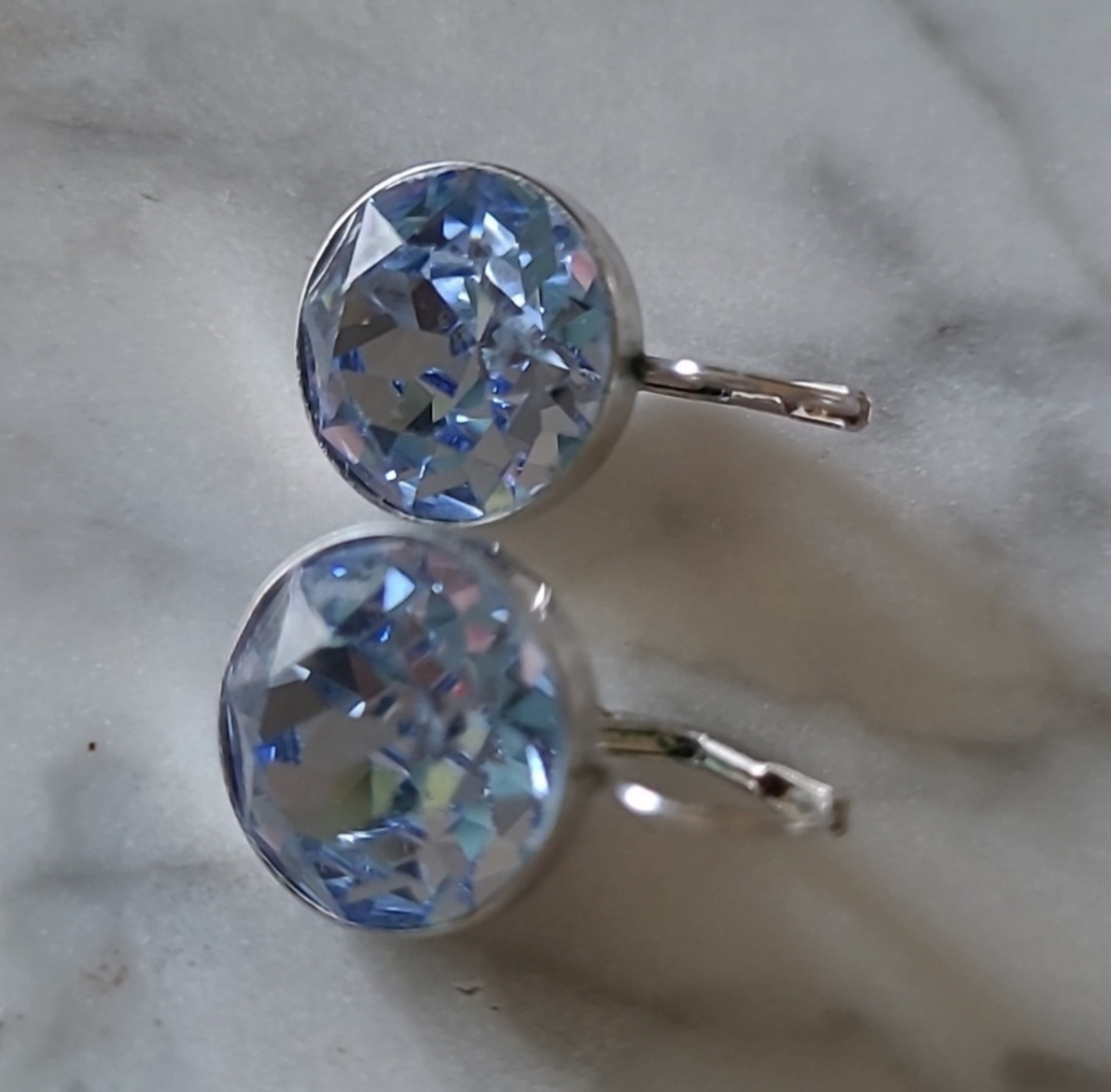These are a beautiful pair of Swarovski crystal drop earrings! They feature a lovely light blue crystal. Perfect for adding a touch of sparkle to any outfit.