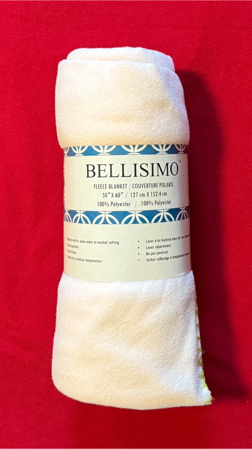 Snuggle up with this Bellisimo fleece blanket! It's a cozy 50" x 60" and made of 100% polyester. Easy to care for, just machine wash in warm water and tumble dry at medium temperature