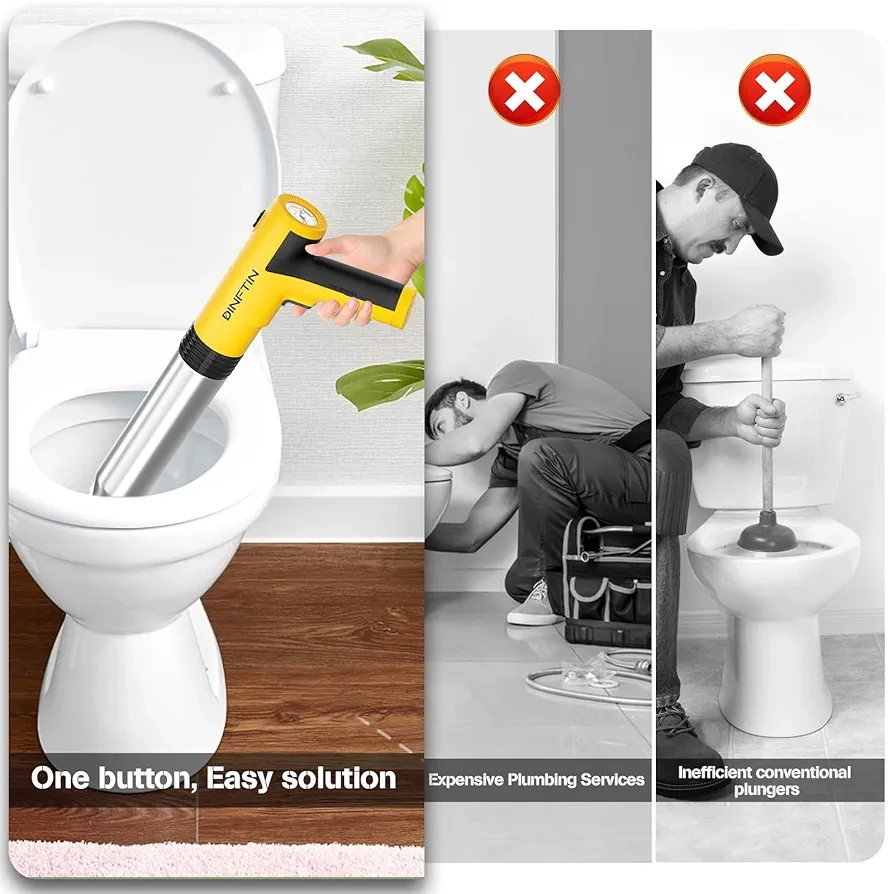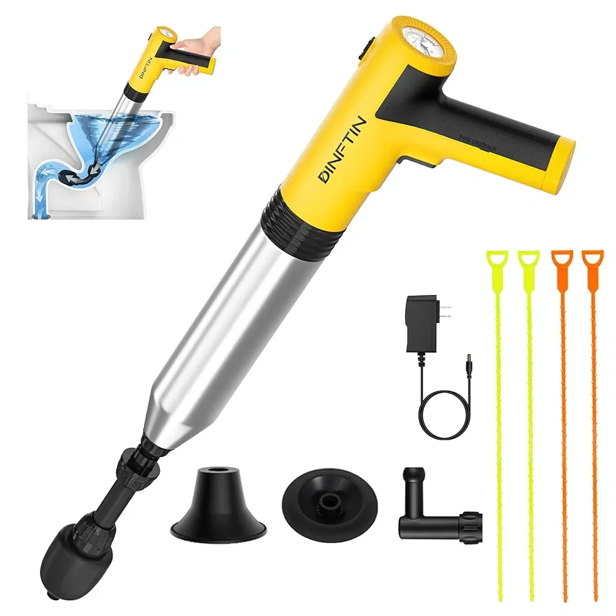 Dinftin Electric Toilet Plunger - Cordless High Pressure Drain Unclogger, Heavy Duty Clog Remover For Toilet, Bathroom, Floor Drain, Sewer & More | Safe & Portable Drain Blaster. Retail $79, new, never used.