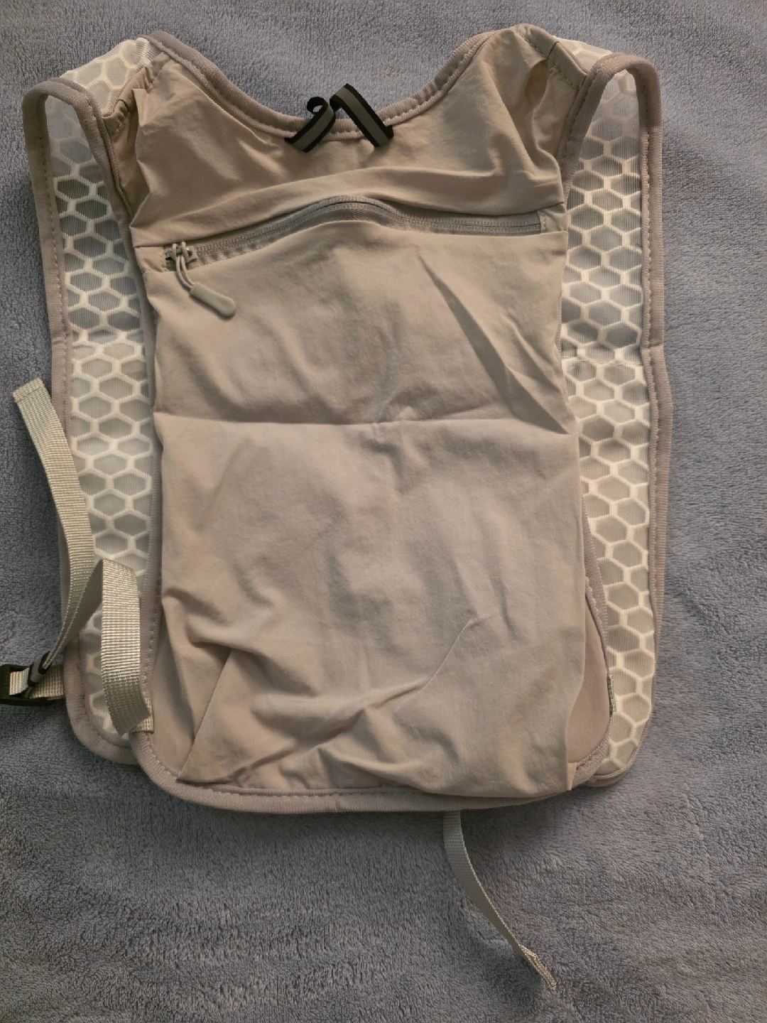 Selling a lightweight and portable running vest. It's perfect for carrying essentials during your runs. The vest is designed for comfort and convenience, making it ideal for both short jogs and long-distance training. It features multiple pockets for storage and is made from breathable material. It is in great condition and ready for your next run!