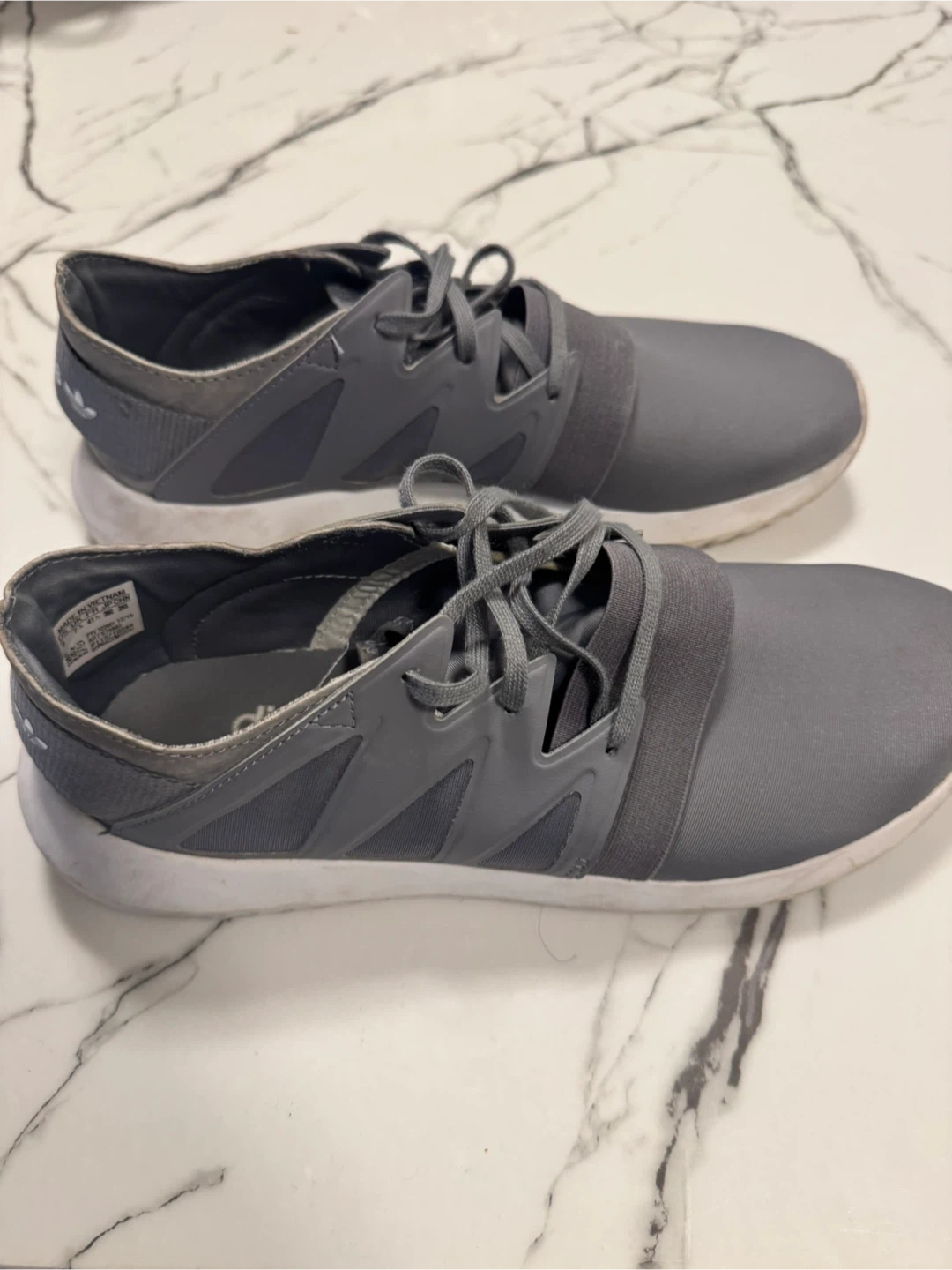 Selling a pair of Adidas women's Grey Tubular Shadow sneakers in a nice grey colour! They're in great shape and are a size 9. Perfect for everyday wear or light workouts. These are super comfy and ready for a new home