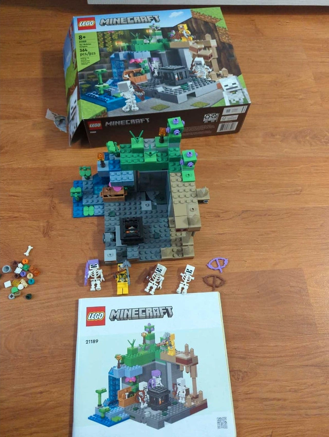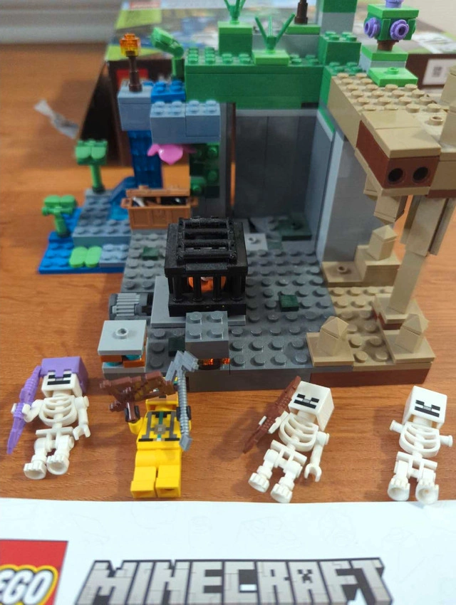 Dive into the depths with the LEGO Minecraft Skeleton Dungeon 21189 set, featuring 364 pieces for ages 8 and up! This set includes everything you need to build an exciting underground adventure, complete with skeleton figures and interactive elements. This set has been built previously, but is complete with all the parts except one skeleton arms. It is in excellent condition.