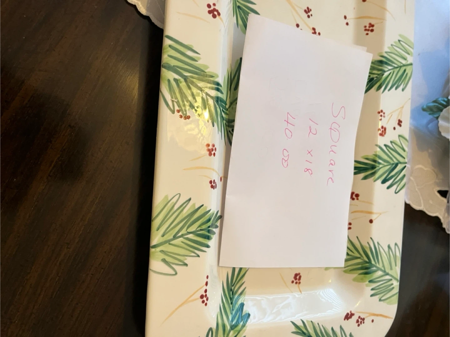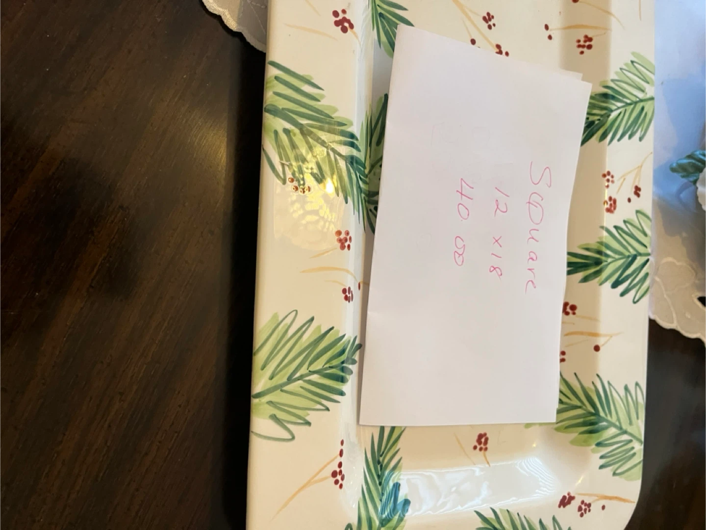 Selling a lovely Christmas platter! The dimensions are 12 x 18, and it features a festive design with green foliage and red berries. It's perfect for serving holiday treats or adding a touch of seasonal cheer to your table