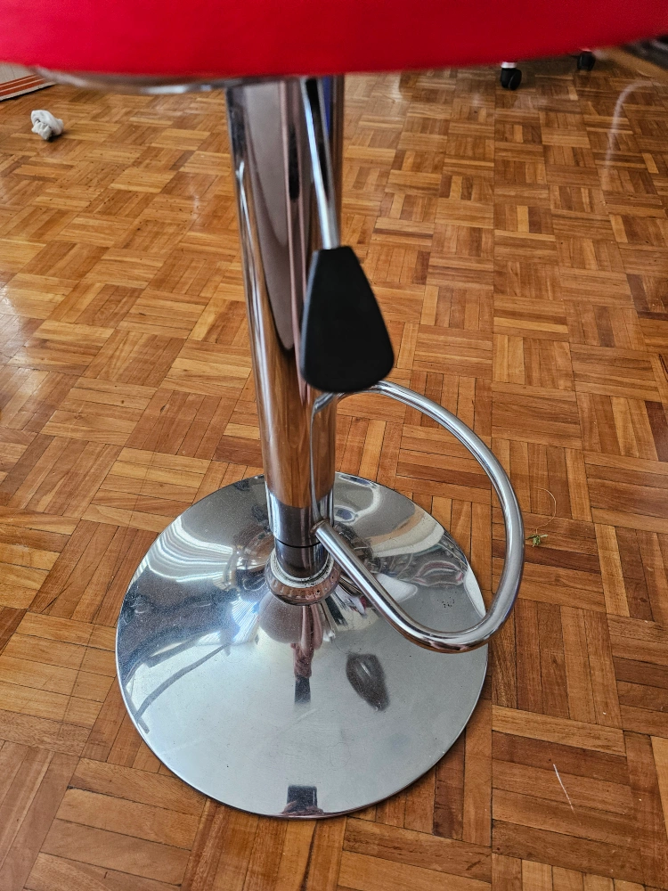 š„Selling a red faux leather bar stool or hair dresser salon. It's an full functional adjustable swivel kitchen counter height chair. There is a small scratch on the seat, as shown in the photos. The height vary from about 65 to 90 cm (25 to 35 inches).