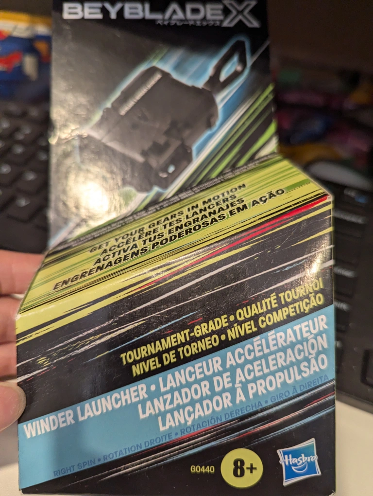 Selling a brand new Beyblade X Winder Launcher, still in its original packaging! This launcher is designed for right-spin Beyblades and is tournament-grade. Get ready to let it rip with this awesome addition to your Beyblade collection.