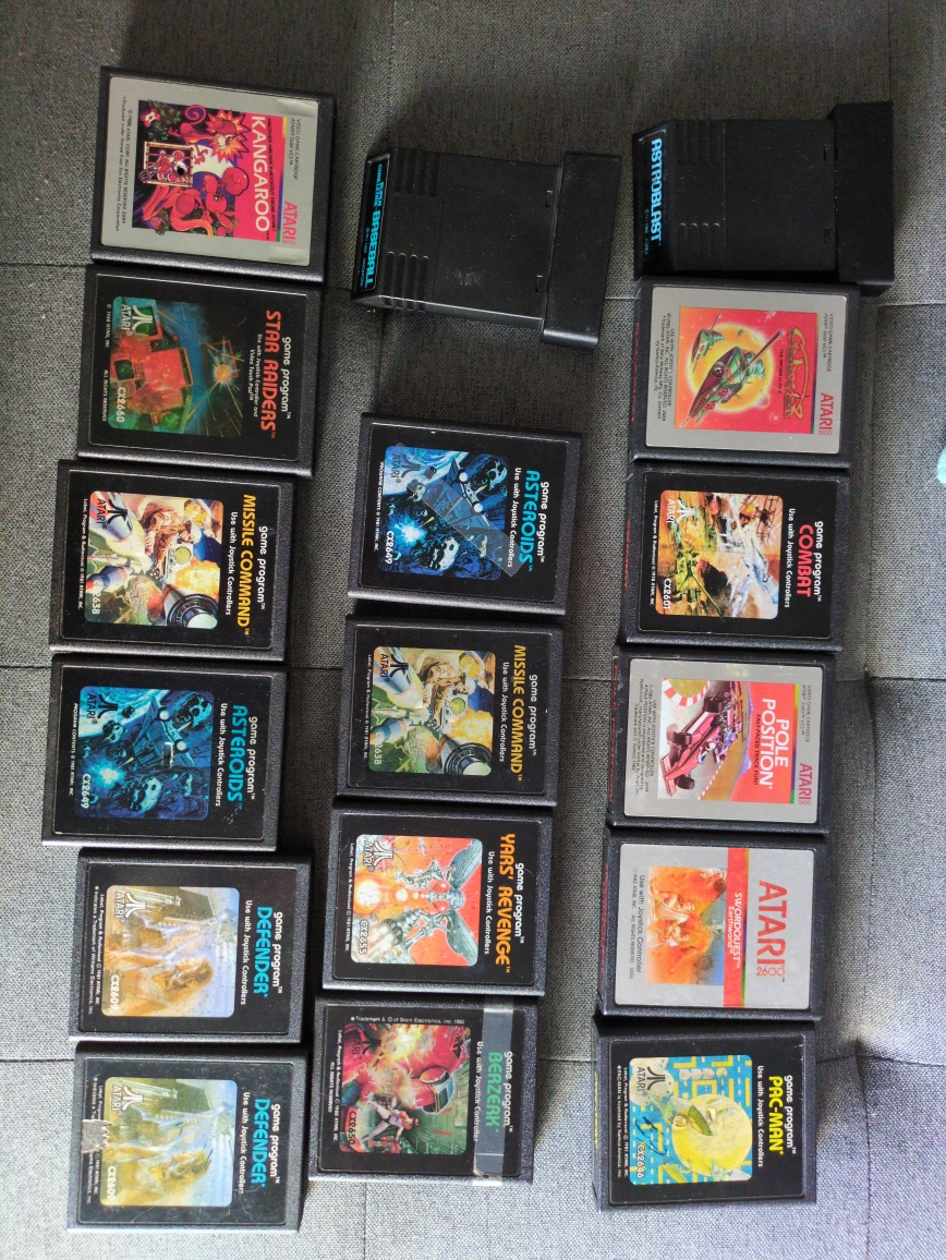 Selling a collection of Atari game cartridges! Titles include Combat, Asteroids, Missile Command, Star Raiders, Kangaroo, Defender, Yar's Revenge, Pole Position, Pac-Man, and more! Perfect for a retro gaming enthusiast
