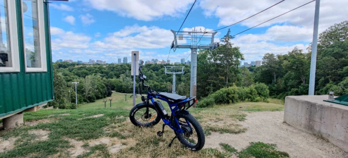 -Long bench seat and rear rack, included metal fenders, large 1,500 lumen LED headlight and tail/brake light, LCD display, kickstand