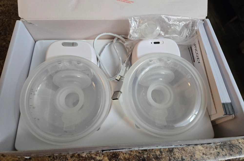 Selling a Momcozy S9 Pro Wearable Breast Pump double set! Includes two pumps, charging cable, and the original box. These are in excellent condition and ready for a new home. Perfect for busy moms!