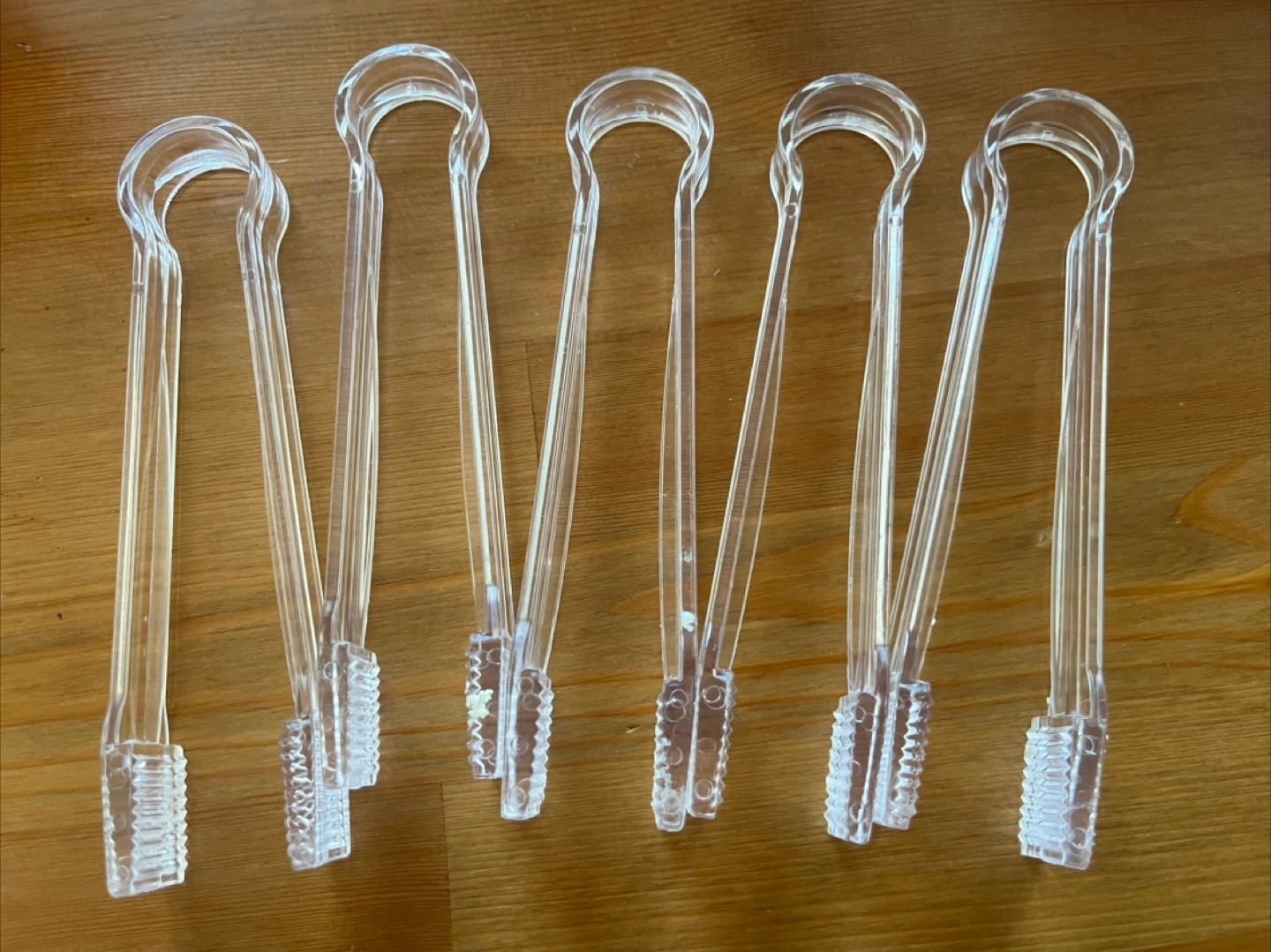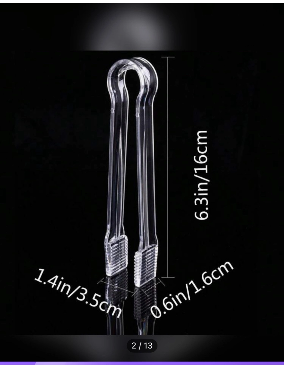Selling a set of clear acrylic ice tongs! They're perfect for serving ice at parties or for everyday use. The tongs are made of durable acrylic and are easy to clean. They measure approximately 6.3 inches (16 cm) in length