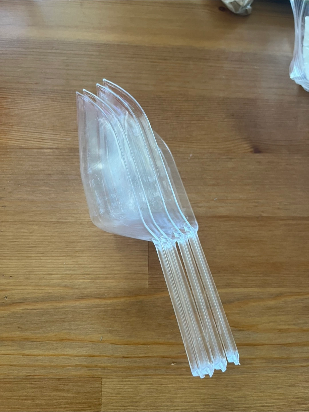 Selling a set of clear plastic ice scoops. They're perfect for scooping ice, candy, or other small items. They are in great condition and ready for a new home
