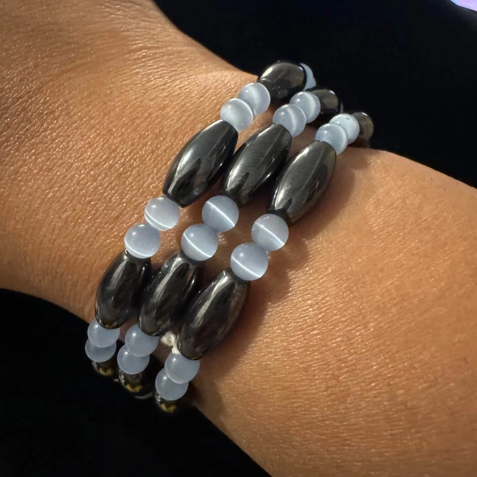 Hematite Cat’s Eye Gemstone Magnetic Necklace/Bracelet