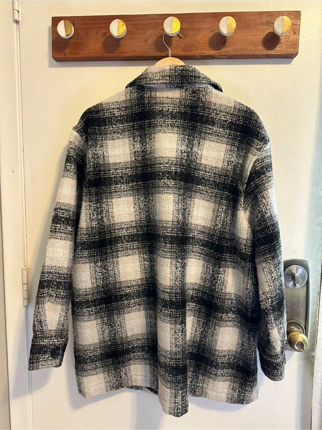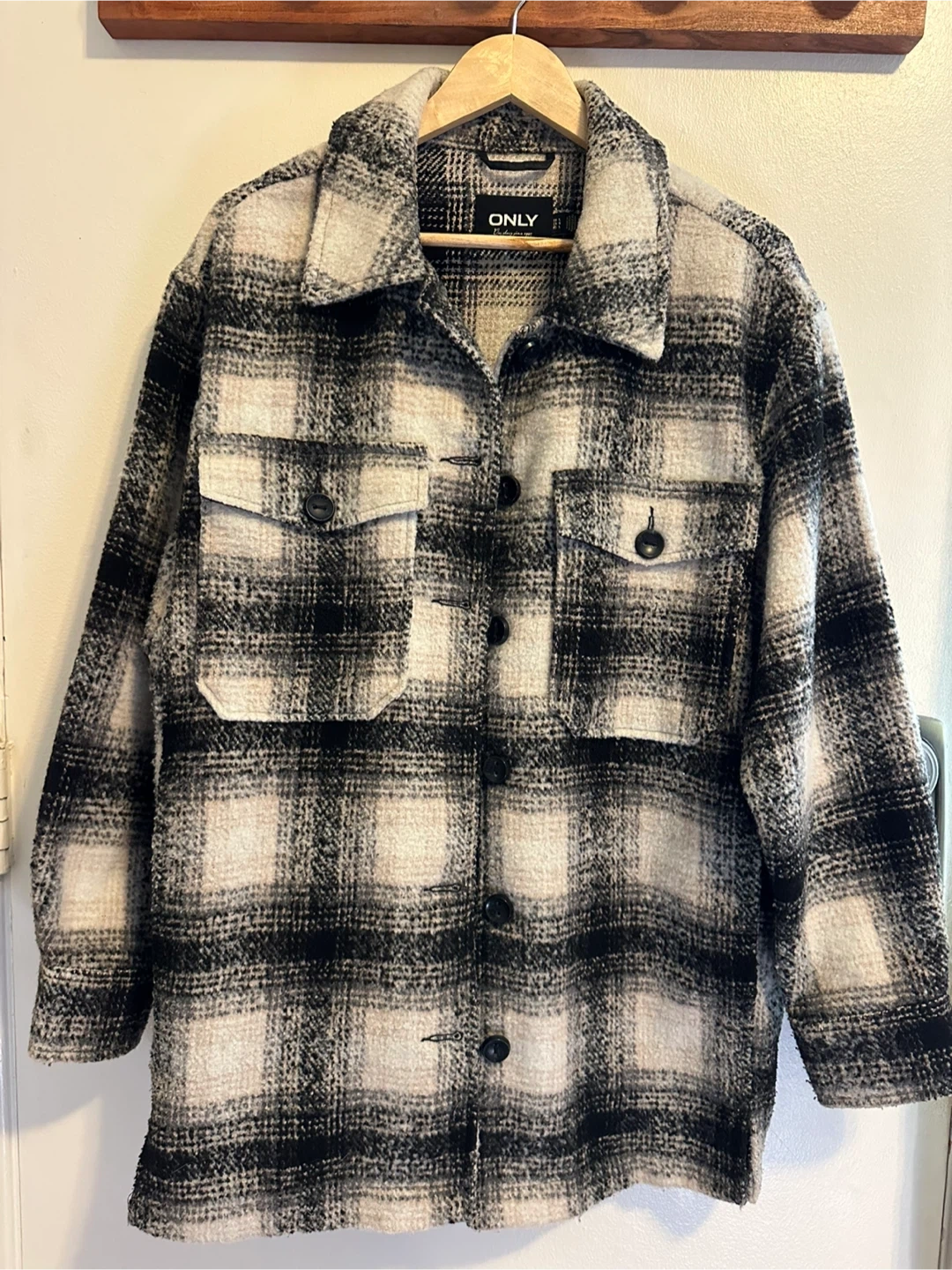 15Cozy up in this stylish ONLY plaid shacket! It's a size L and in great condition. Perfect for layering during those chilly Canadian days!