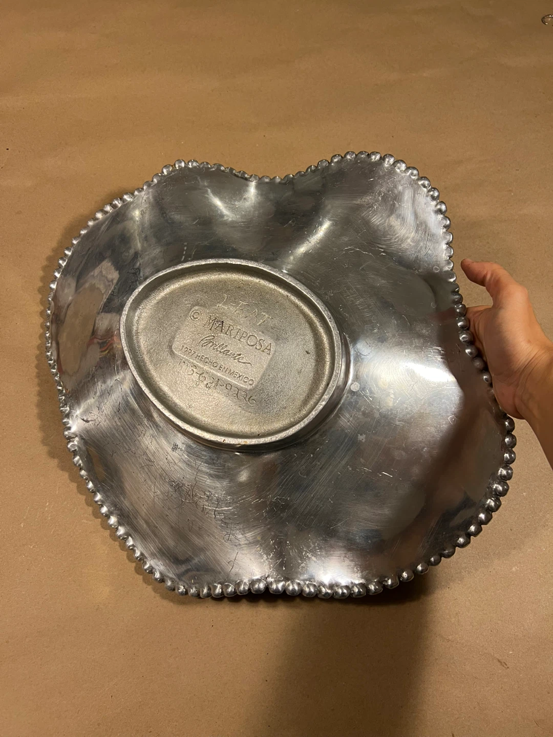 1 / 51 / 5Buy & SellMariposa Silver toned dishMariposa Silver toned dish$25Large wavy silver toned dish with a beaded edge. Quite heavyweight, great for a centrepiece.ConditionGoodWHERE TO MEETCheck LocationView MapSELLERTiffTrinity Bellwoods64962 reviews0 chats·3 favorites·36 viewsSEND CHAT TO SELLERHi Tiff! I’m interested in your listing.Hi Tiff! I’m interested in your listing.Get the Karrot app to chatSign In to chat
