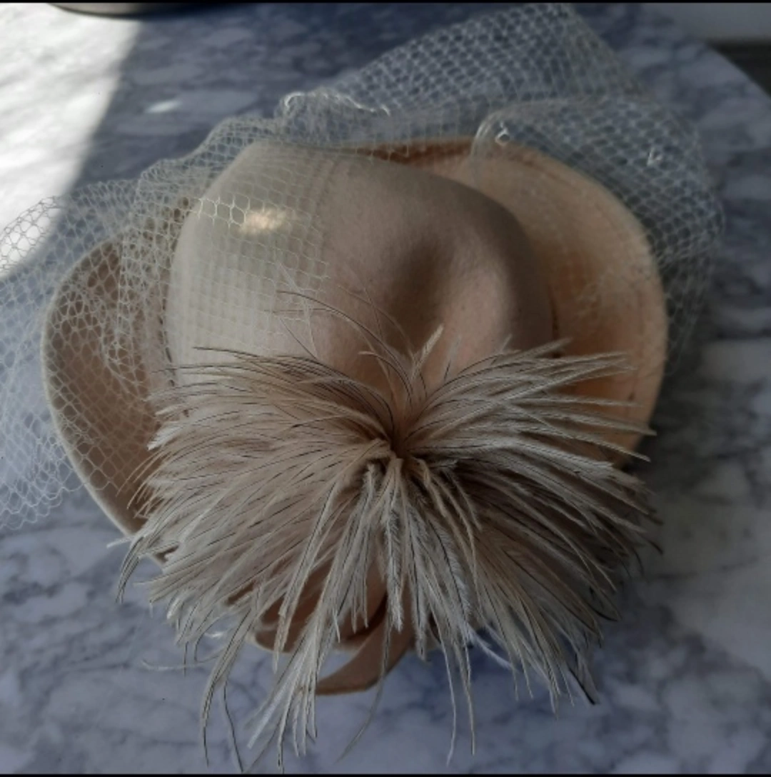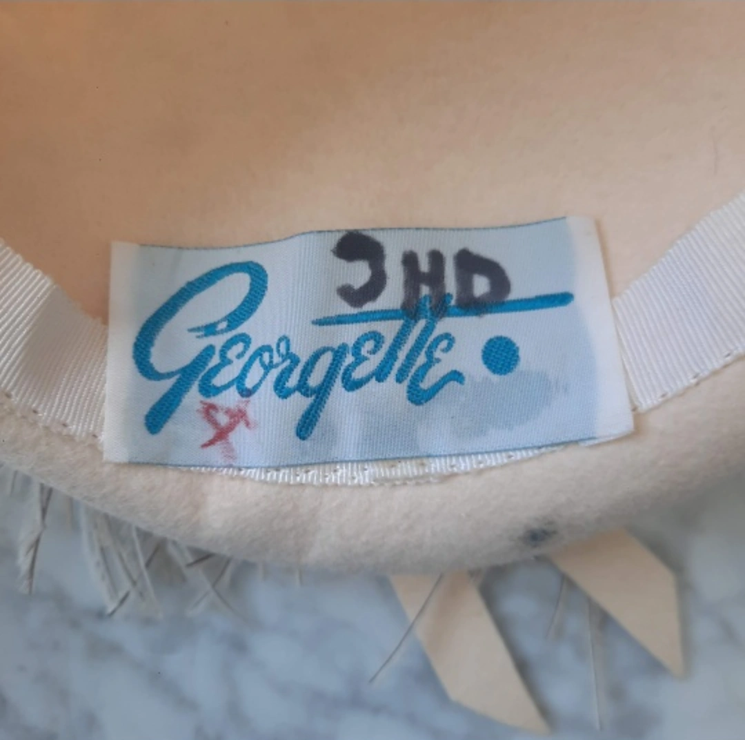 Selling a vintage Georgette hat with a veil. Real felt and feathers. Made by by a hat maker. It's in great shape and has a unique, classic look. Perfect for adding a touch of elegance to any outfit!